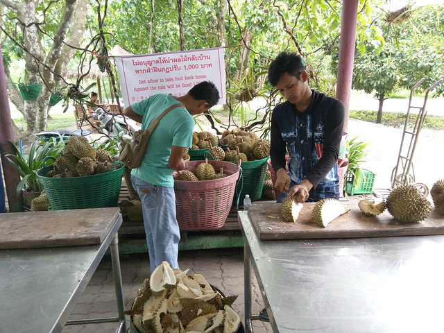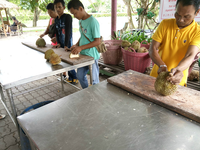 无数框榴莲,只要你要就使劲给,得把门票吃回来呀,。这边酸的,不好次。哈哈哈,这次真的吃到吐了,,