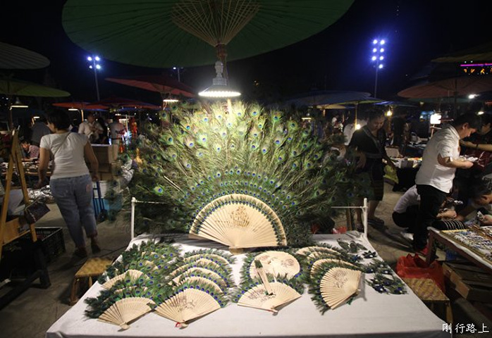孔雀饰品,街边售卖很多有特点的小东西,比如首饰、民族特色服饰、泰国香皂、泰国药品、热带水果及各种烧烤。