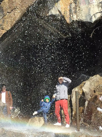 不带任何防护措施,也可以进入到水帘洞里面,衣服会略湿,不拘小节的人是不用有任何担心的 ! 小朋友是“ 叶公好龙”, 真让他进了 ,又有退却的意思,我鼓励他说“等你回去以后,同学们问你,水帘洞里面有什么? 真有石碗,石板凳吗? 你怎么说? ”, 他沉思了一下,二话没说冲了进去!