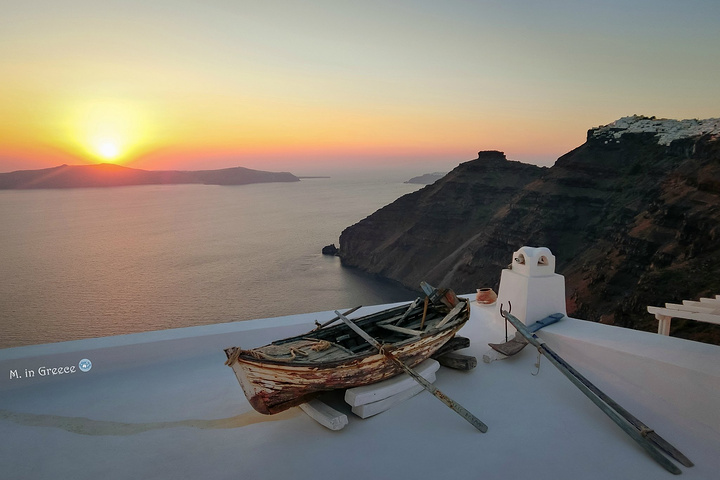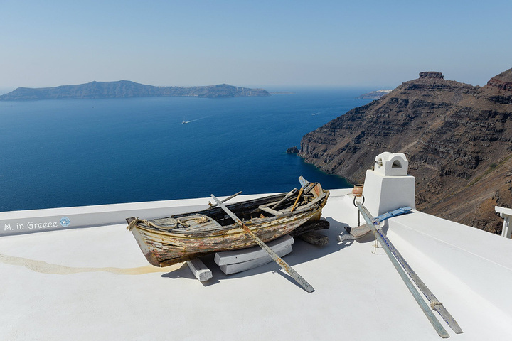 每一个来圣岛的游客都不会错过这里,不仅有着蓝顶教堂,还有一艘搁浅在房顶的独木舟,每一处小景色都是一副绝佳的构图,绝对是谋杀摄影爱好者最多菲林的小镇。