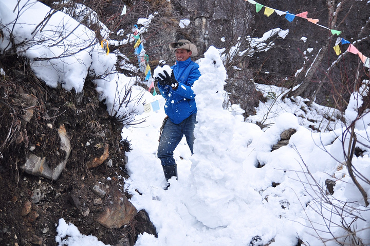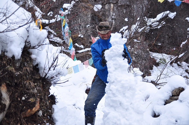 放下遗憾,大家在雪地上撒野打滚,庆祝今日成就。 队伍速度参差不齐,可爱的向导在等我们这些后进分子的时候还堆了老高一个雪人,可这雪人也太奇形怪状了吧!难怪向导一边堆一边自己乐开了花,看不下去了吧