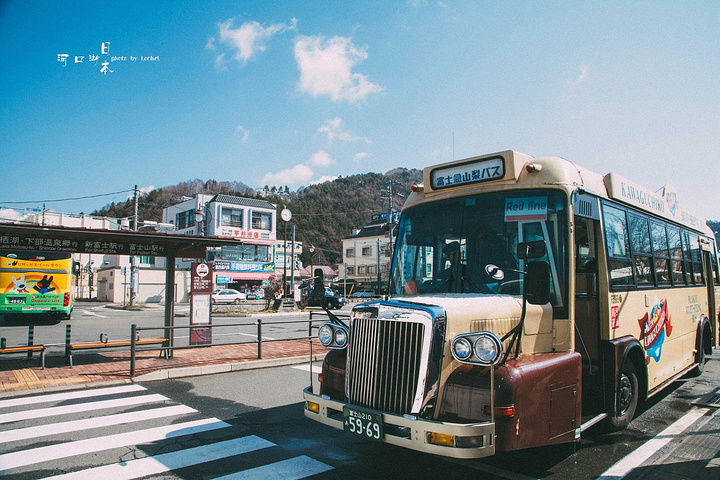 为了看富士山一眼,特意挤出1天半的时间,安排了夜巴这么辛苦的行程。早上8点左右,顺利到达河口湖站。 河口湖 河口湖是富士五湖中最低的湖,其他四湖分别是本栖湖、精进湖、西湖、山中湖。河口湖海拔830米,面积5.7平方公里,是比山中湖小富士五湖中的第二大湖,湖岸线曲折交错,湖周围最长,达20.94公里。特别是北岸湖岸线尤为错综复杂,正面还有众多的眺望富士山的旅游胜地。作为富士山的拍摄点而闻名。 河口湖站的复古小火车造型。
