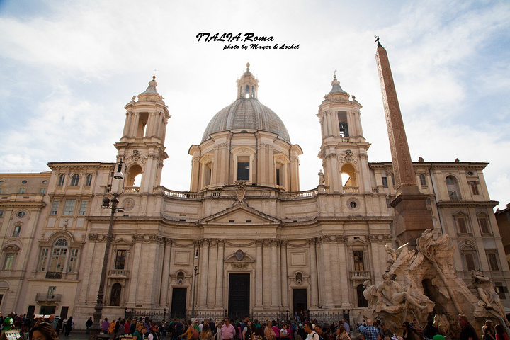 2.8罗马最后一站纳沃纳广场,和万神殿离的很近,是罗马最漂亮的巴洛克广场。广场上的三个喷泉相当著名,四河喷泉、摩尔喷泉、海神喷泉,都是出自文艺复兴时期大师之手。现在广场上聚集了很多街头画家和杂耍艺人,充满生活和文艺情怀。 赶到纳沃纳广场时,太阳正好躲到教堂正背面。圣阿涅塞教堂(Sant'Agnese),其凹形正面(1653-1657)是贝尔尼尼的主要竞争对手--弗朗切斯科·博罗米尼的作品。