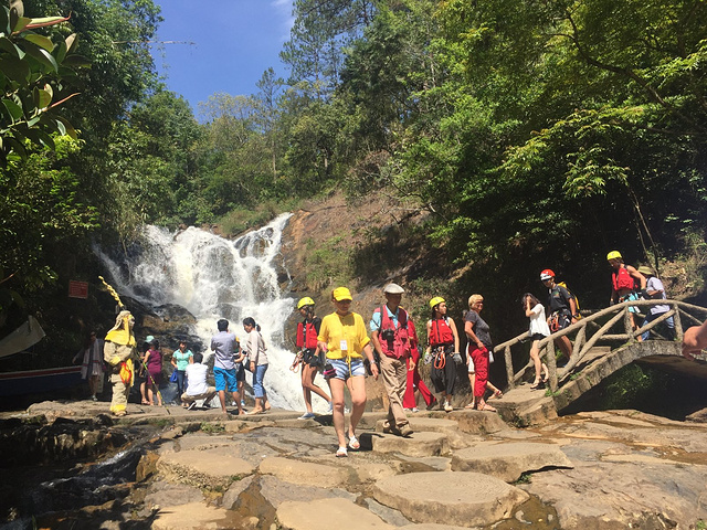 达坦拉瀑布位于大叻的郊区,市区往南大概约10公里左右的路程,在青旅租了一辆摩托车前往6美金一天,报团的化可以体验攀岩,妹子强烈推荐说很刺激,因为在三亚的攀岩更让我难忘,所以最后觉得看看就好,不过这个瀑布还是值得一区,门票4万越南盾,滑索上下5万越南盾,下到第一层瀑布,然后往下走可以坐电梯下到瀑布最底层,电梯和索道的票是一体的3万越南盾,一共加起来三十多人民币,相比我朝很便宜。