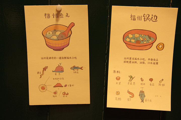 福州特色小吃鱼丸锅边的制作小卡,特别可爱~发现一家福州味的特色小店--城思