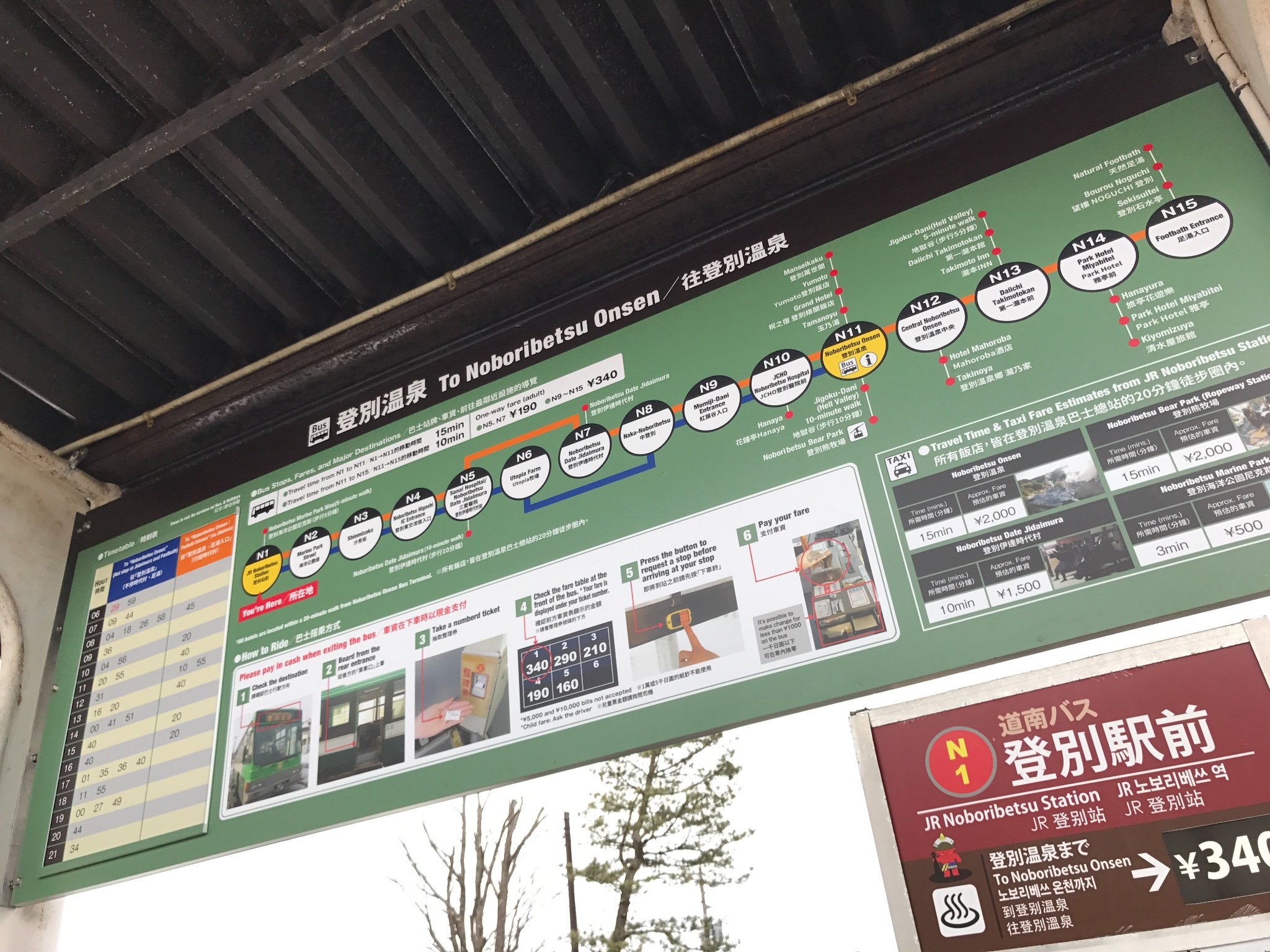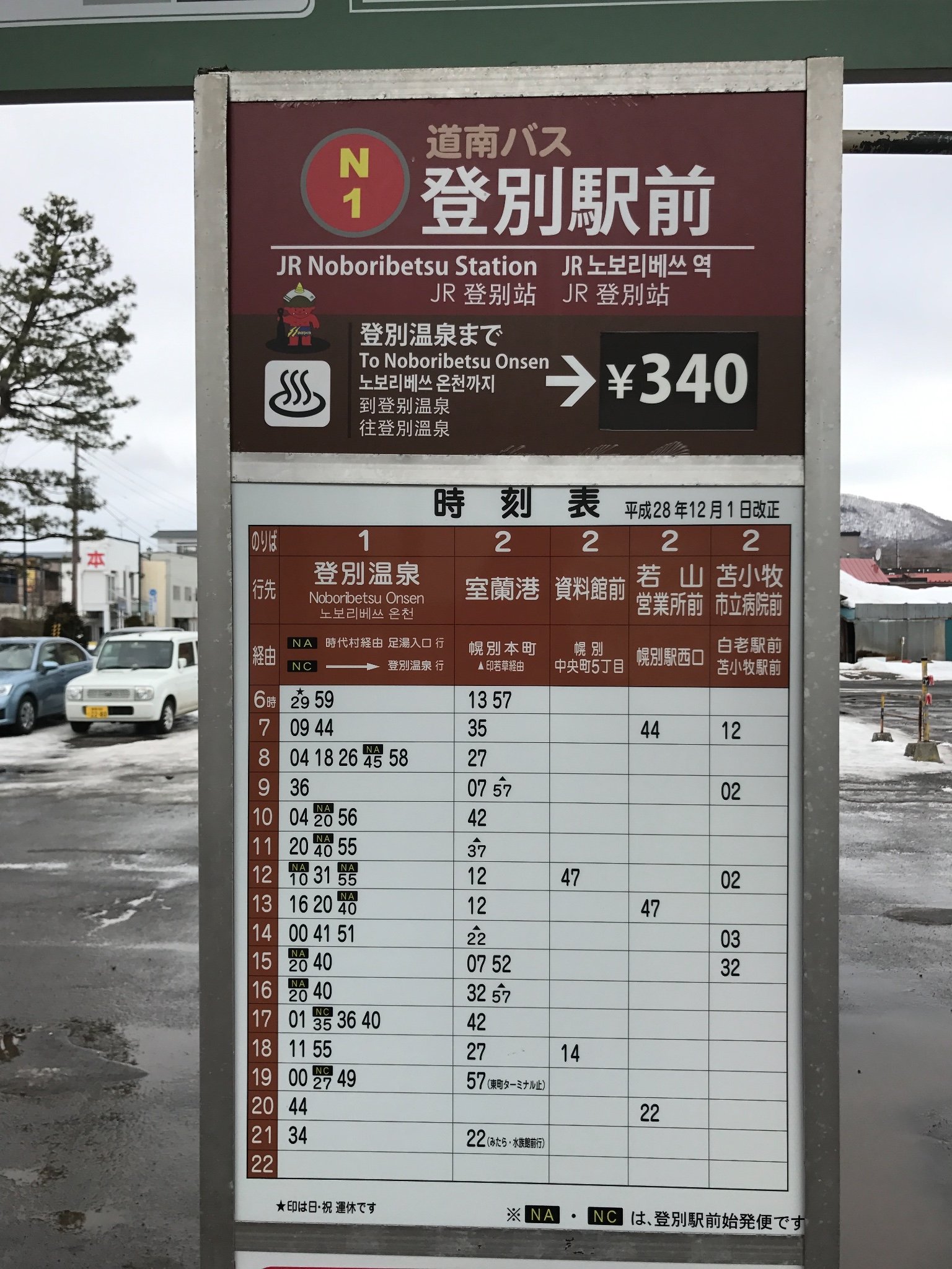 从登别站到登别温泉是需要坐巴士的,不是出站就是了哦~大家看看时刻表哈~从登别站出发的班次还是蛮多的,应该每班火车到都会有巴士可以坐,这方面日本人还是很人性化的。