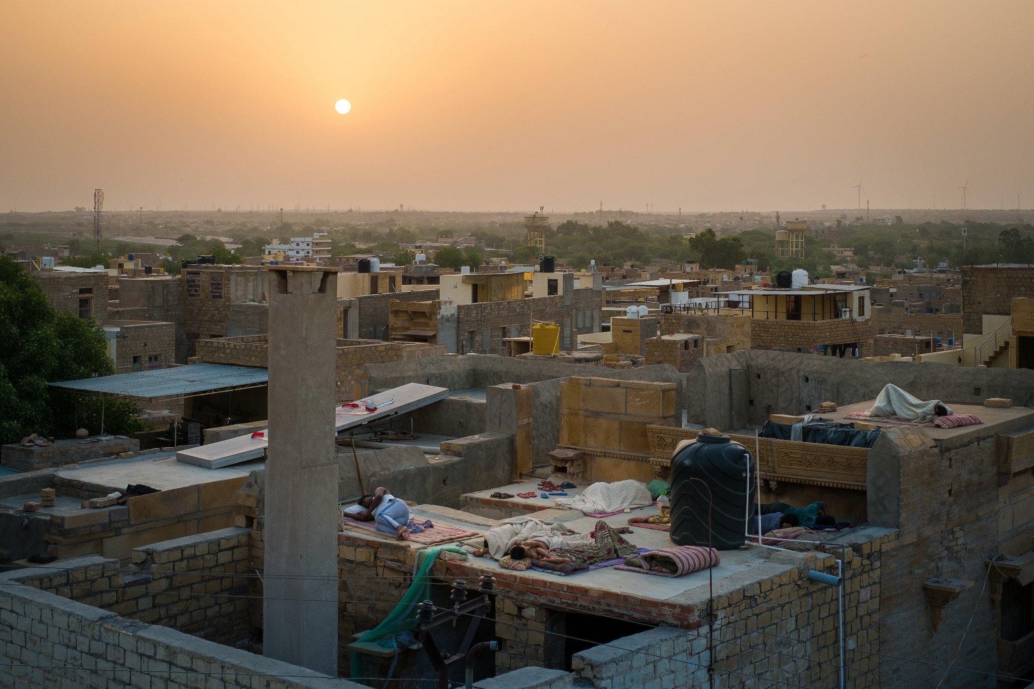 ▲五月是杰伊瑟尔梅尔最炎热的季节,天台上的人们还在熟睡,太阳已经挂在空中。