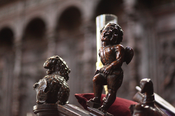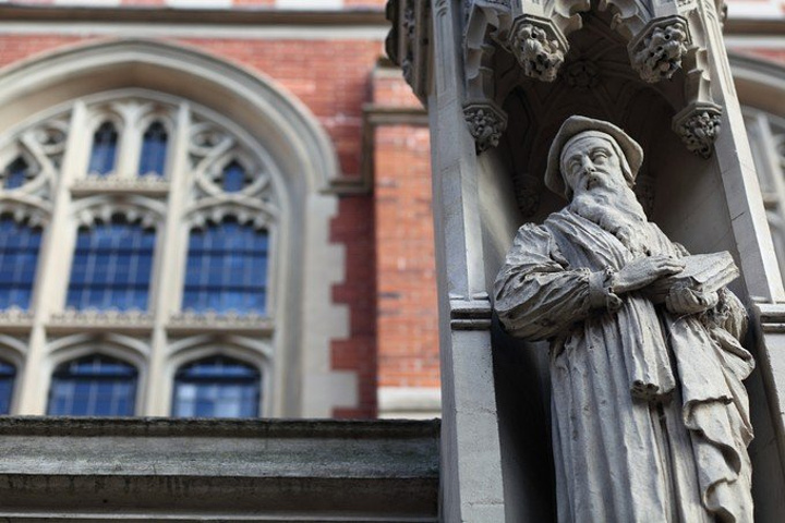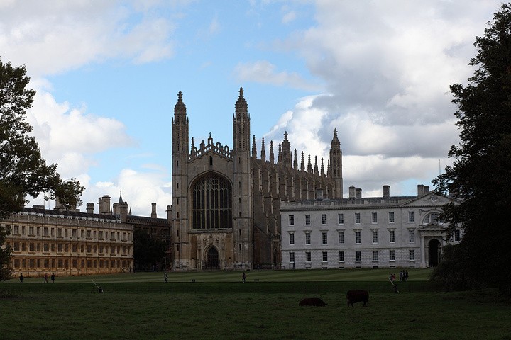 猜猜这位老先生是谁? 从之前说的马路摄政街,然后穿过一座商场进入到三一街就能看到国王学院King‘s College。国王学院是剑桥大学内最有名的学院之一,成立于1441年,由当时的国王亨利六世设立,因而得名“国王”学院。为了显示国王的雄厚财力,学院建立之初就追求宏伟壮观的建筑,所以学院内最著名的礼拜堂,就以耸入云霄的尖塔和恢弘的哥特建筑风格成为整个剑桥市的标志和荣耀。参观这座教堂需要额外付费,不过进去之后你会觉得还是物有所值的,不仅可以参观这座宏伟的教堂内部,还可以在学院内部感受这所世界名校的风采,同时,还能站在康河的桥上看河中撑蒿的帅气而睿智的剑桥学长(据说只有成绩优秀的学生才有资格去撑船,而由于是体力活,所以男生居多),可谓是风景人文均可以饱尝。