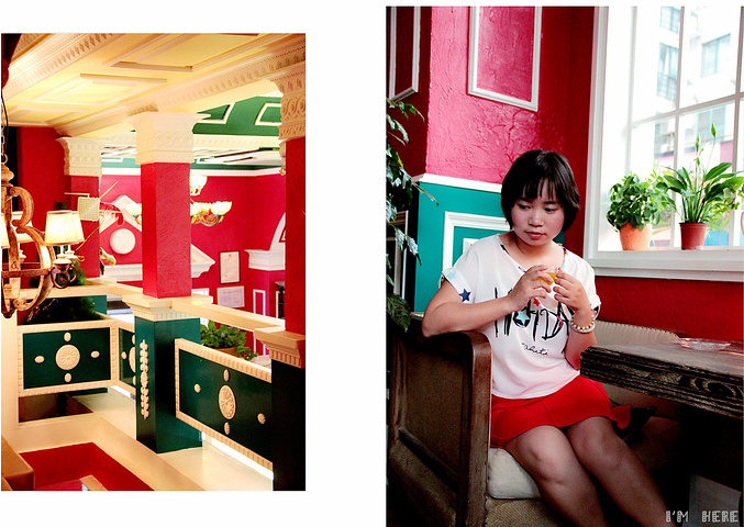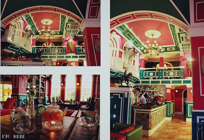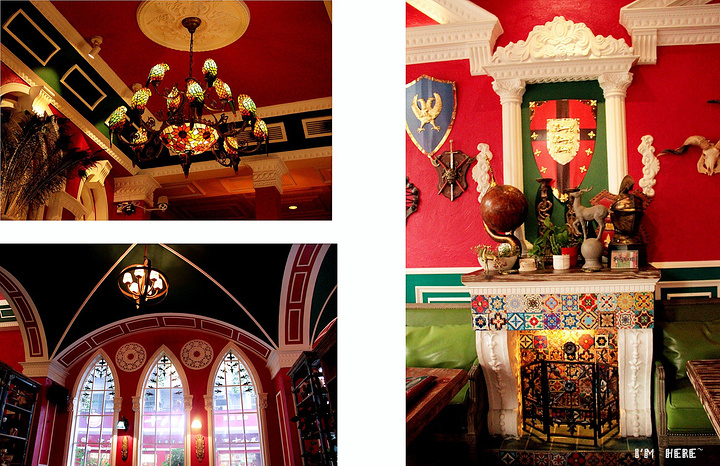 我在咖啡古典欧式骑士风,红绿鲜明彩漆墙壁,慵懒的书吧角落,大爱古典多样的花灯.热情浪漫的卡布基诺,厚实的鲜奶泡,香甜浓.拿铁,咖啡与牛奶的经典混合,哪怕不习惯喝咖啡的人,也难敌它柔滑香甜.米兰冰摩卡,特浓咖啡加奶,叠上层层奶油,甜而不腻,但是我只喝了水果茶,总之还是很赞的~