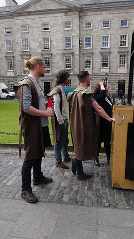 在学校门口里面,有一些学生身穿古代凯尔特人服装,准备给大家做校园游的导游。不过可不是免费的。每人13欧元。