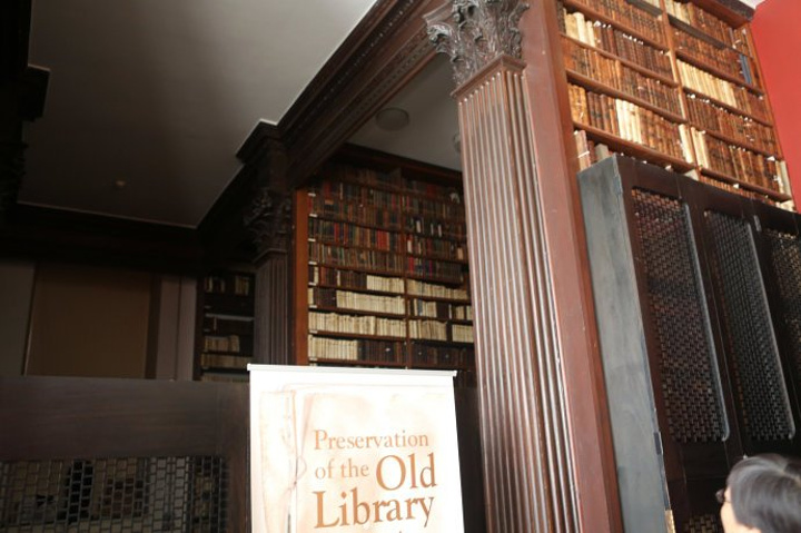 从阅览室北侧的通道向东走就可以看到一座朴实无华的老楼,这里就是著名的圣三一学院的老图书馆。老图书馆于1712年---1732年由建筑师托马斯伯格(Thomas burgh)。这个建筑原来有三层,1857年第三层的地板被拆除,以便建造富丽堂皇的长厅(Long Room)。这个厅一会儿我们会看到。