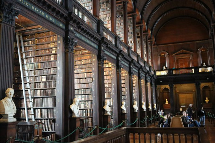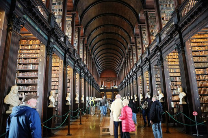 曾经介绍过,圣三一学院的图书馆里爱尔兰最大的图书馆,图书馆拥有免费获得爱尔兰境内出版的印刷材料的权利,也是爱尔兰唯一一所拥有获得英国出版的所有材料的权利的图书馆。 包括希腊和拉丁文的重要的手抄本,埃及的纸草文书,16世纪,17世纪的爱尔兰作品,甚至有英国著名作家莎士比亚的原稿。