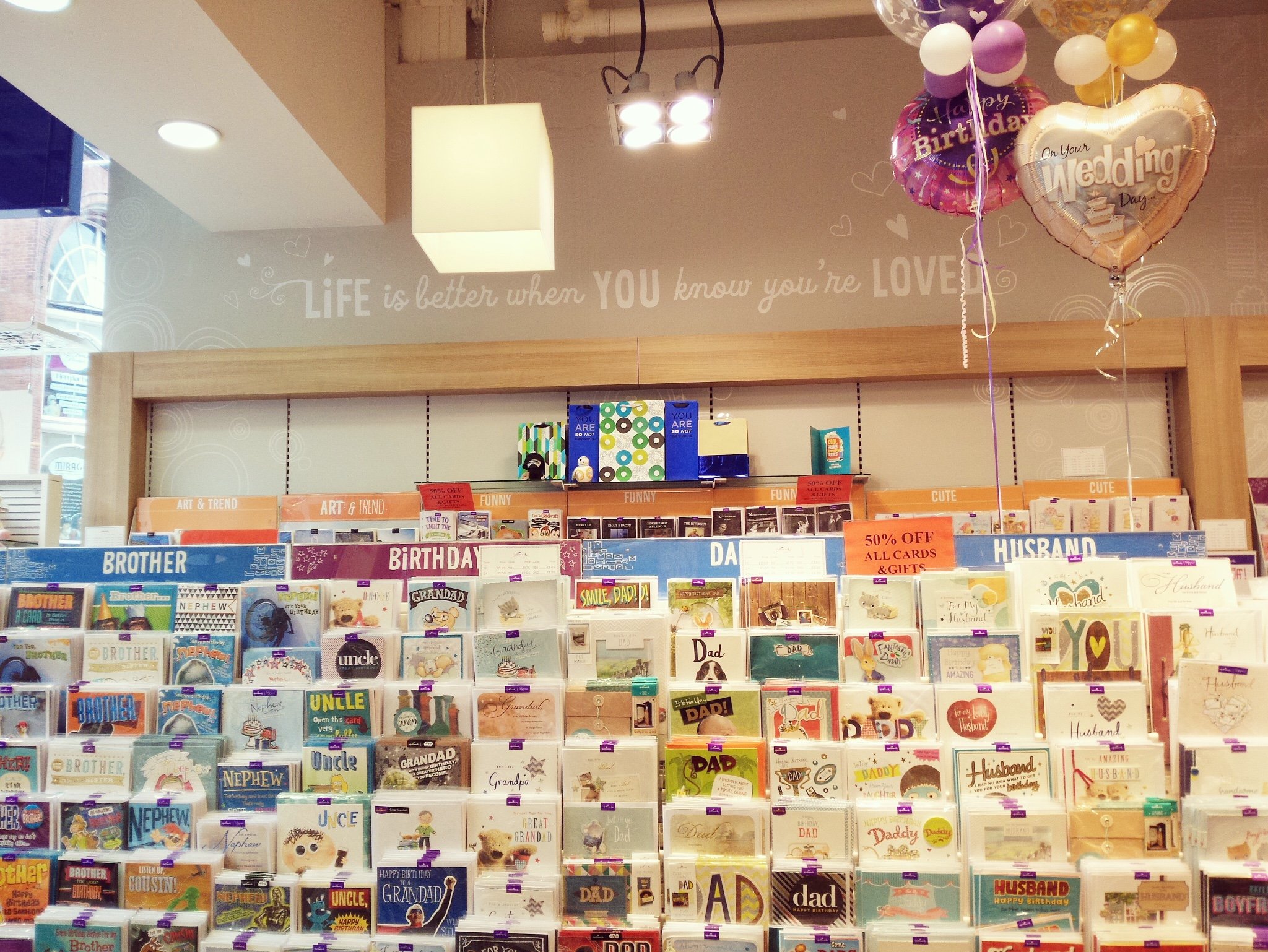 遍地可见的礼品店,颜值超高的贺卡气球包装纸,我觉得英国人这点还是很值得学习的,有写信、送贺卡和阅读的传统习惯。