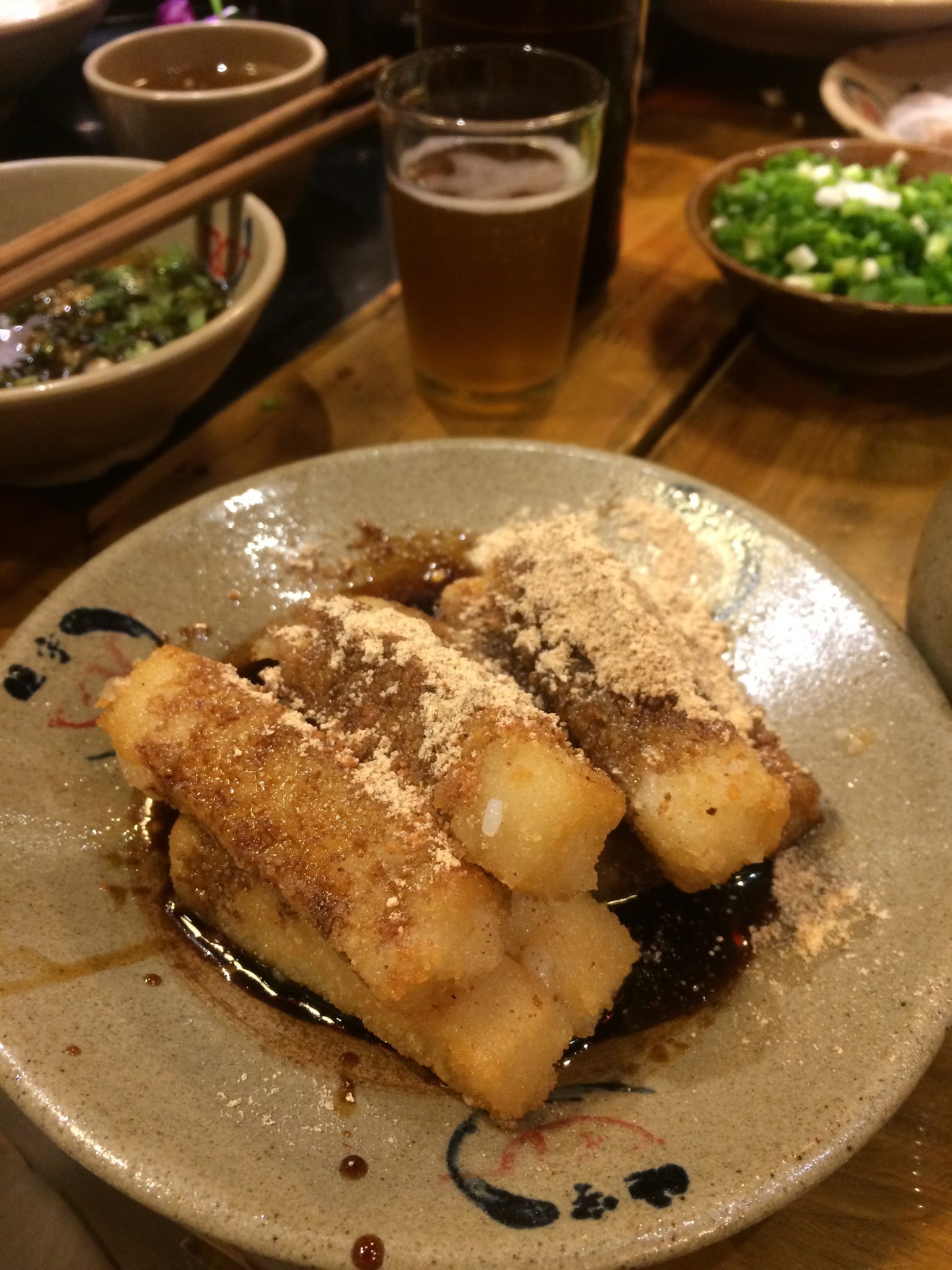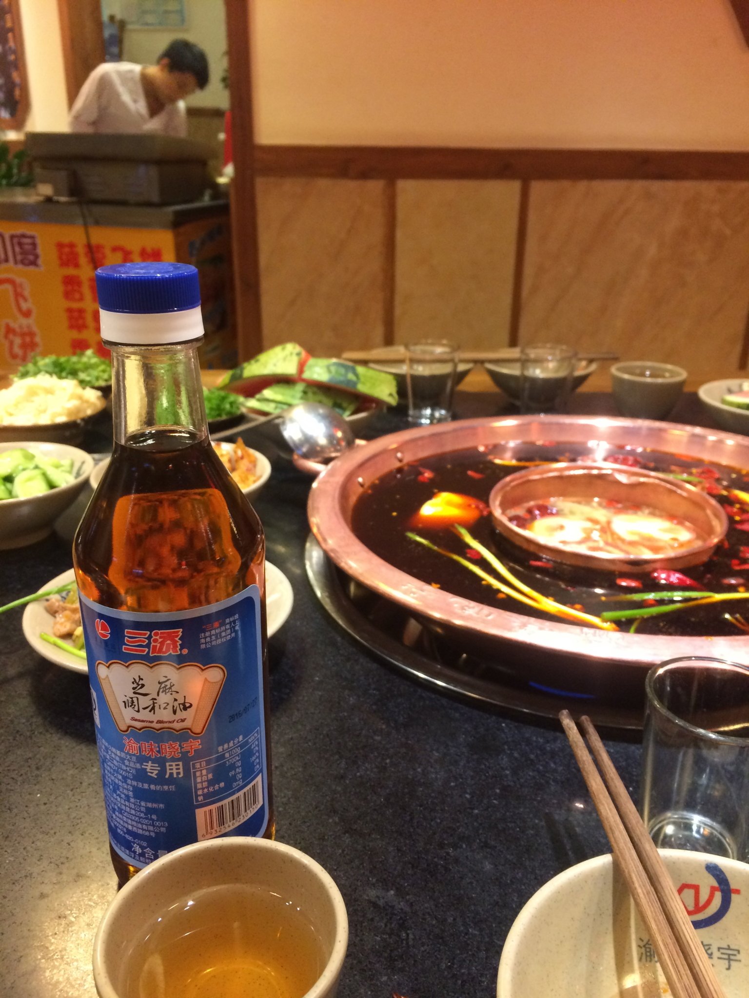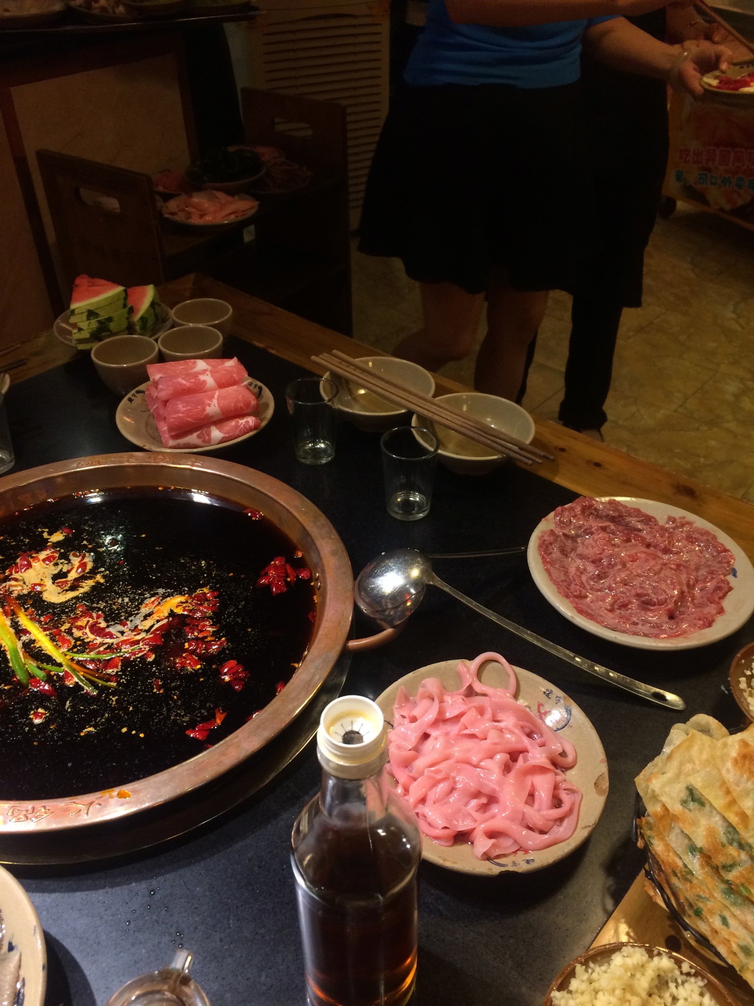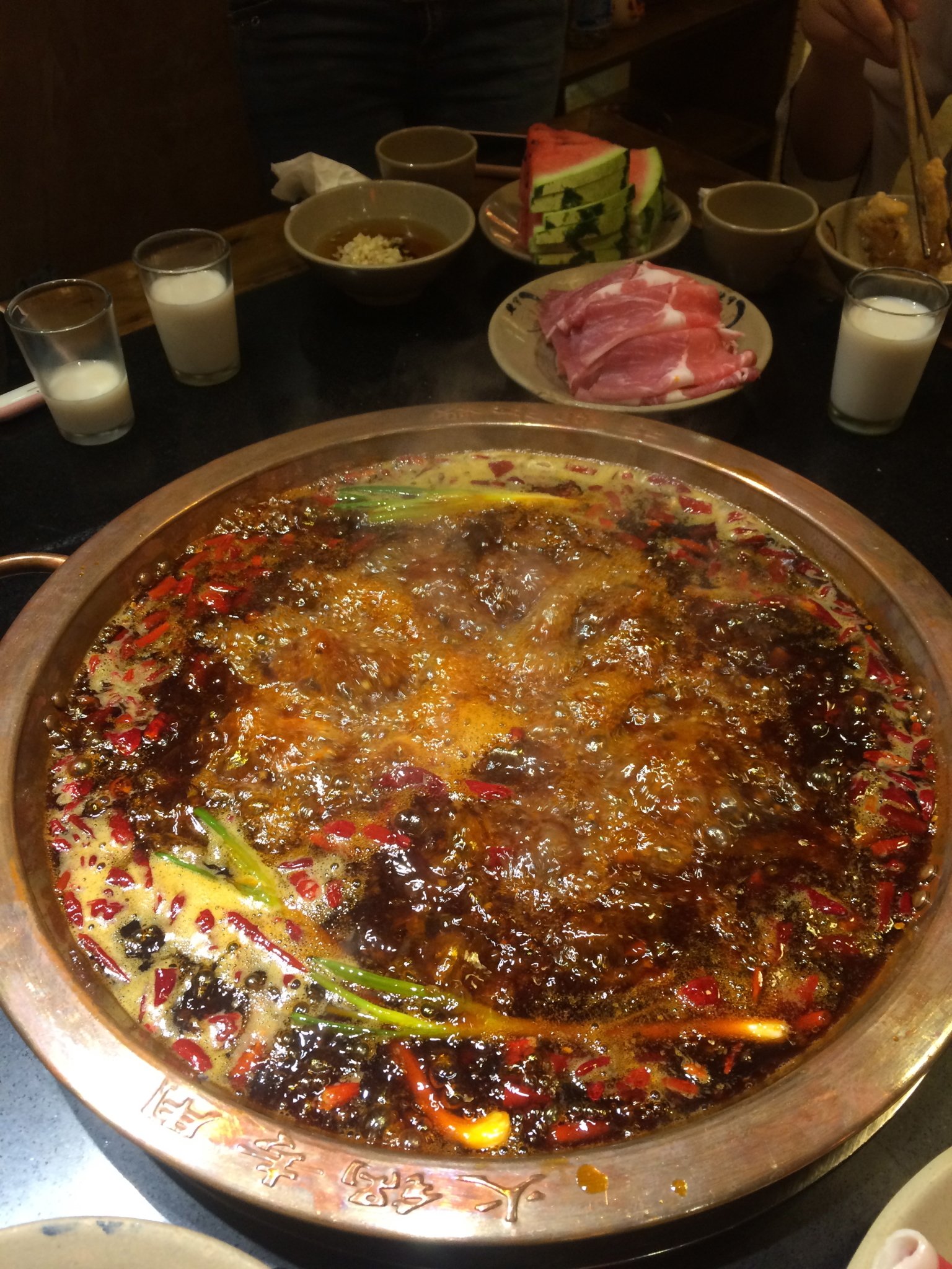 晚上去吃的火锅,因为和好几个同事一起去吃的,所以点的菜比较多。火锅滚了,开吃。成都特色红糖粑粑