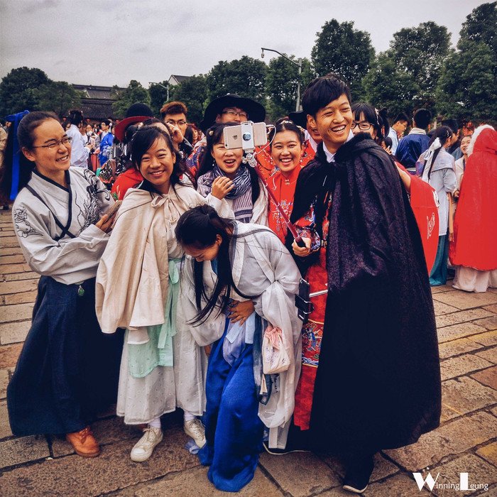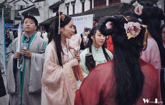 对于游客来说是图新鲜,开眼界,对于汉服爱好者来说这绝对是一次会友的盛宴。随意在小巷中游走,可以见到不同制式不同演绎的汉服,无论是汉的大气,晋的飘逸,唐的开放,宋的端庄,明的中和,目不暇接。