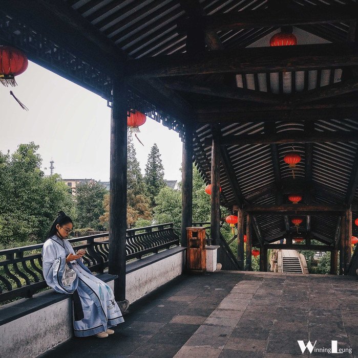 西塘的美,从来就是小桥流水人家,漫步粉墙黛瓦之间本就已经是一种诗意,而如今再穿上传统服饰以另一种形式去感受,广袖飘飘,衣袂摇摇,真真切切地走进旧时光里。