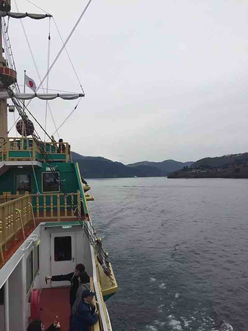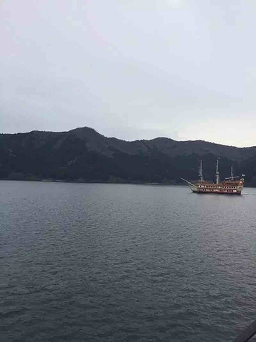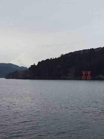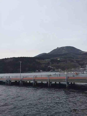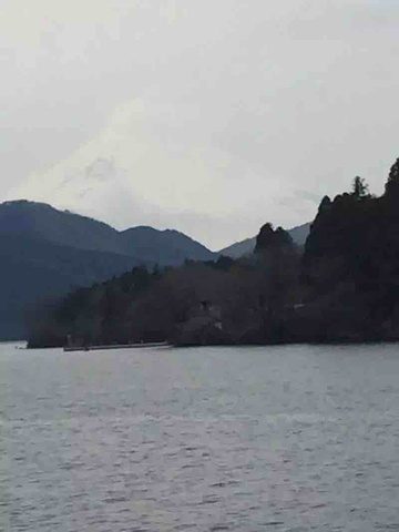 从箱根坐公车上山,大约半小时的山路就到了。抵达河口湖站台下车后,眼前豁然开朗了。远远看去,青山环绕着一片纯净的湖水。然后会有一个小小的码头,你就可以去买船票排队上船啦!末班车是16:30的,所以要看好时间。然后船开出去不久你就会看到远远的隐约的富士山了。