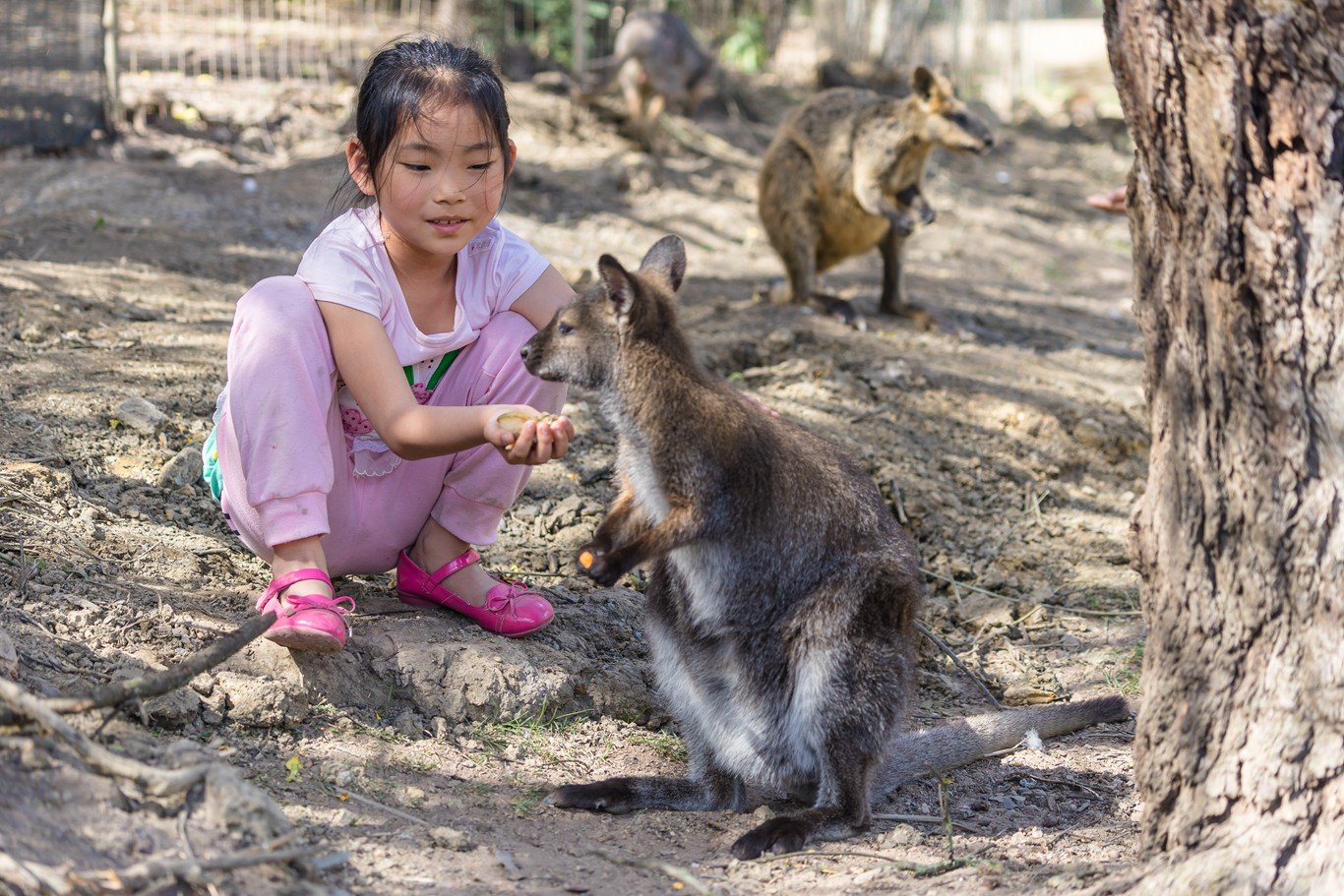 9点开门,我们算是第一批入园的。这里的动物基本全放养呀,象袋鼠这些,都没围栏的,你可以随便喂他们,它们可能也习惯了,不怕人的。抱考拉就更可爱了,不过每天只开放三个时间,上午11点半,中午1点半和下午2点半。