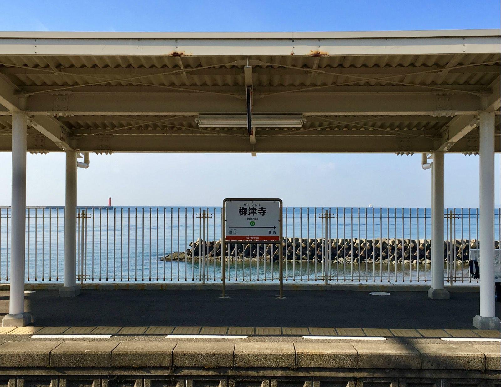 松山伊予铁道梅津寺火车站,怀念一下东京的爱情故事,剧中二人在梅津寺车站分别那段,莉香没有选择跟完治约定好的16:48分的电车,而是选前一段16:33的电车离开了,把完治永远留在了一边是海,一边是车站的梅津寺。