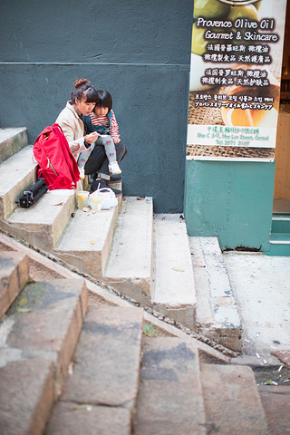 带着贝壳儿躲开人群,在石板楼梯处,就地解决。通粉也是很好消化的,加上贝壳儿自小便对番茄情有独钟,所以午餐选的很顺口。只要贝壳儿吃饱了,我们就可以放心的去下一个地方玩耍啦~ 此处应该配有秋风落叶,配上我们凄惨的路边午餐 用这种方式吃午餐最大的优点就是快捷,半个多小时解决午餐。打车花费123大元(含5元隧道费)用时大约30分钟便到了我们的下一个目的地赤柱。贝壳儿现在有个习惯,一上车就睡觉。正好午餐过后,美美的在出租车里睡了半个小时,直到下车时还一直睡着。吸取上次青岛的教训,这回只要上车就给贝壳儿脱掉外套,避免在车里出汗后下车吹风着凉。我们下车的地方就距离海边很近了,这里就可以感受到明显的海风。下车时小心的把贝壳儿包裹好,抱着她进入赤柱广场里随便找了一家店坐下,让她睡到自然醒。