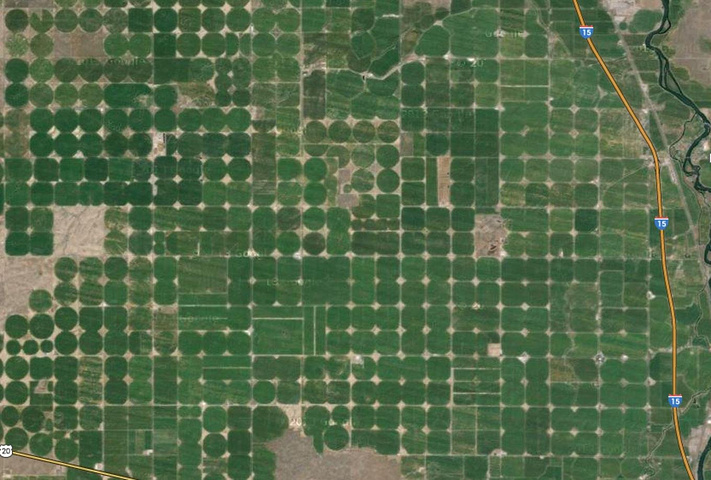 巨型自动灌溉装置是美国现代农业的基础,卫星图上的圈形农田就是它们的杰作