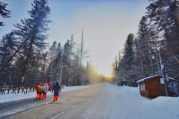 由于最后一班回山门的车,四点钟发车,这个景点没有走完我们就往回走。从地下森林坐上下山的大巴车,到了山门大约是四点多了,退了护腿。山门附近,据说有几家温泉酒店,可以住店,也可以单独泡温泉,是很多去了一天长白山人们的选择。但最终我们还是坐上了回酒店的车。由于长白山和北京有点时差,下午不到五点钟天已经黑下来了。回到酒店发现被吹的一侧脸颊直接呲红了。 第一天的长白山之旅显得有些仓促和经验不足,冷确实是真的冷。另外就是天气的变化是不能预料的。看景得看命。