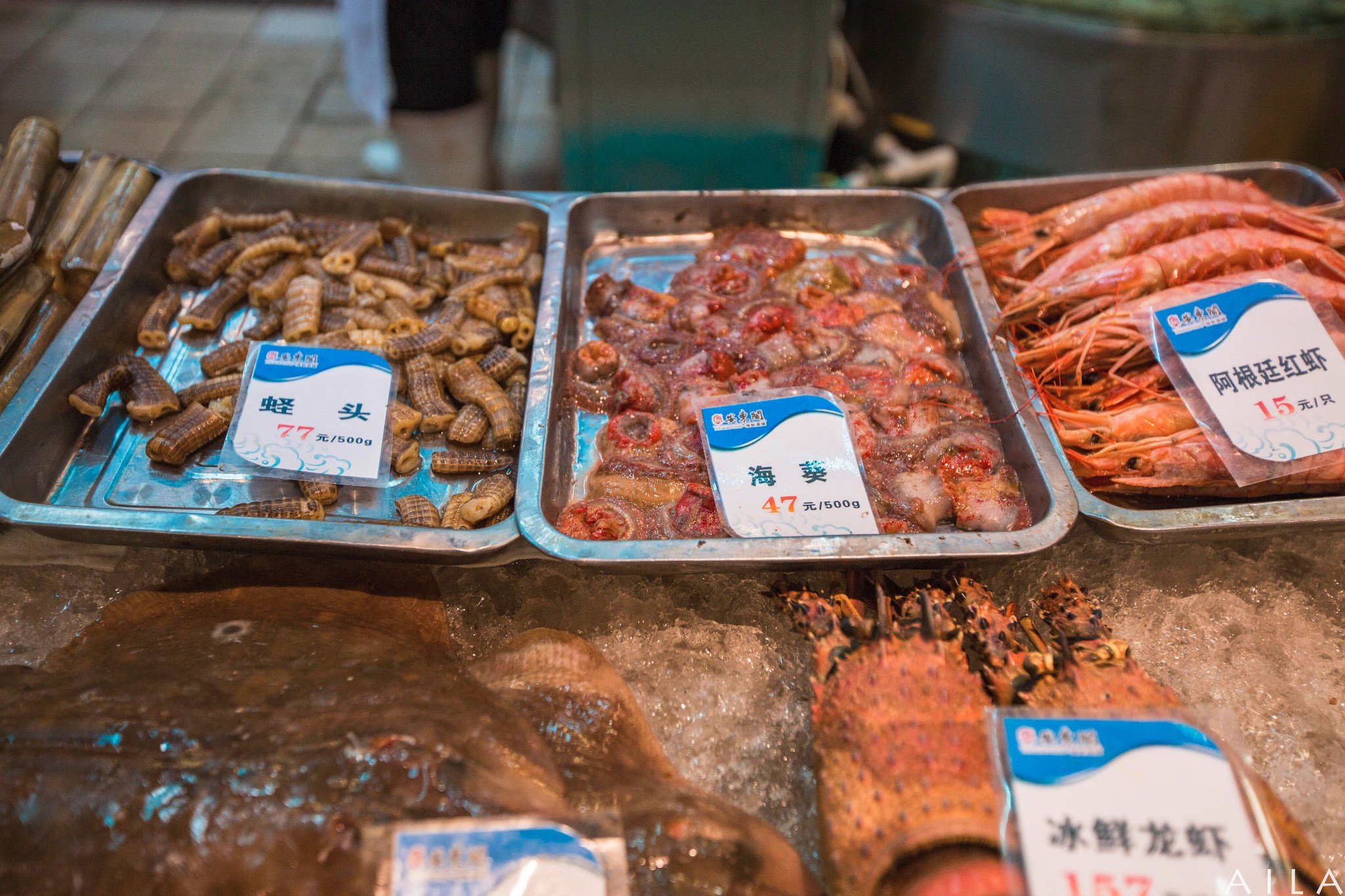 看到大龙虾的时候爱拉曾经一度眼睛是放光的,但是龙虾又不是这里的特产,所以又冷静的忍住了。好了,既然不买就不要站在这里做梦了。