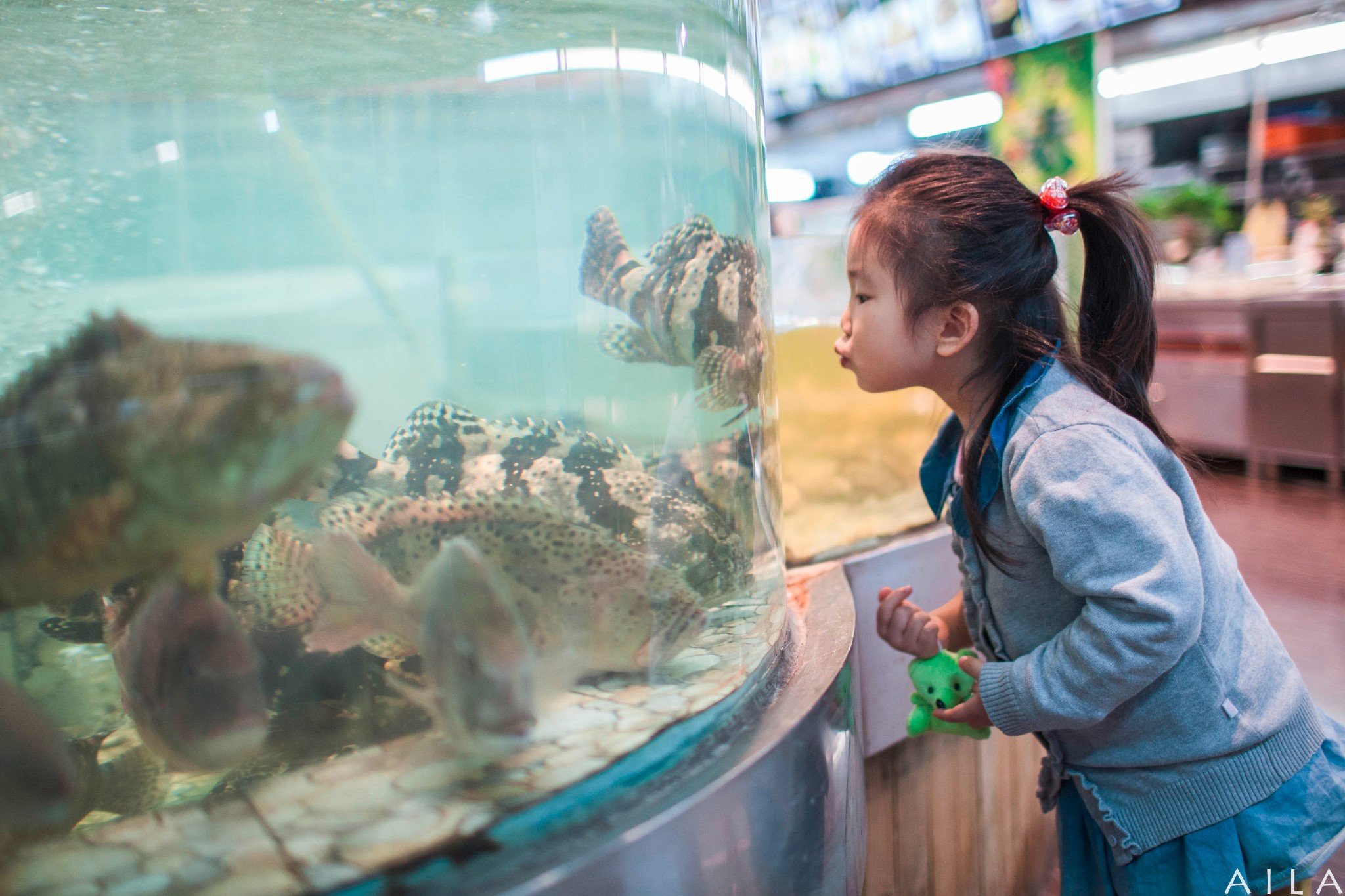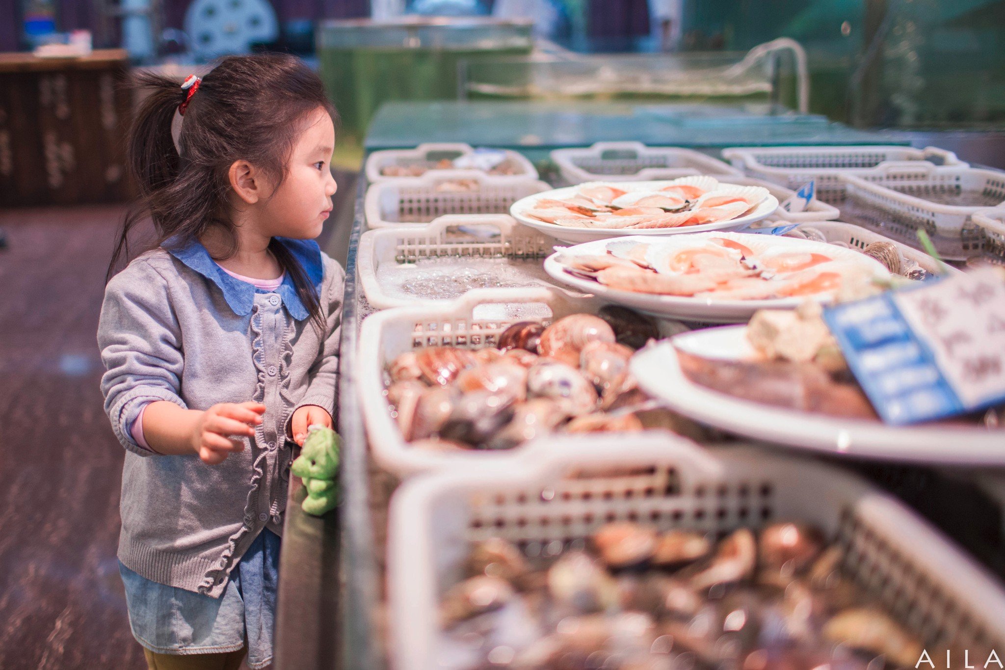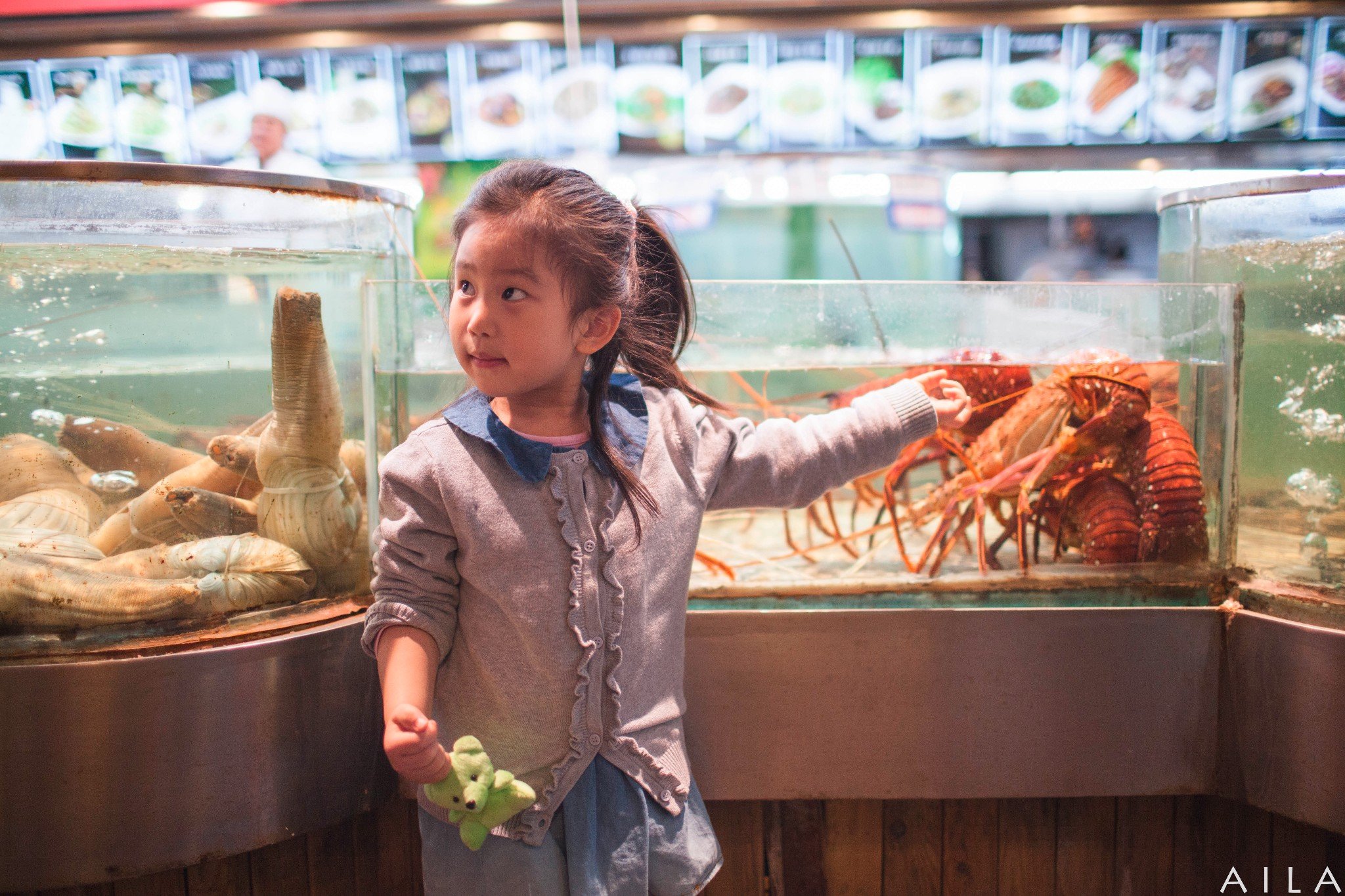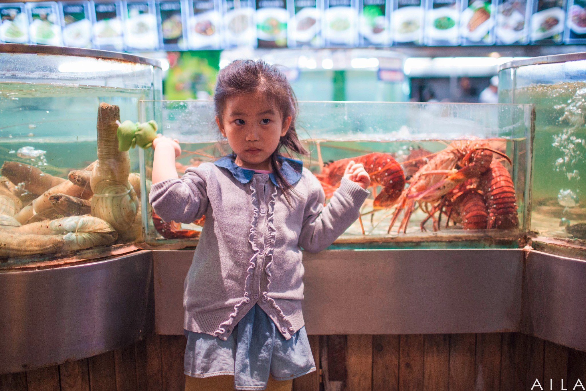 对于一个不到四岁的小盆友来说,也许在海鲜店里面点菜的过程和去海洋馆参观没有什么两样,她的心思丝毫不会放在吃上面,看着各种活生生的海里面的小东东,对贝壳儿这个北方长大的小姑娘来说无疑是新奇的,此刻的她被一只被惊吓到的小海贝喷出的水柱完全吸引了。