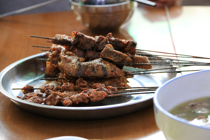 美食推荐羊湖回到拉萨差不多两点了,来到这家吃烤串,太好吃了,太好吃了。去拉萨一定要去吃啊,烤羊蹄,烤羊排,还有一款土豆忘了叫什么名字,还有面食都好吃因为好吃,我们晚上宵夜又去吃了一顿