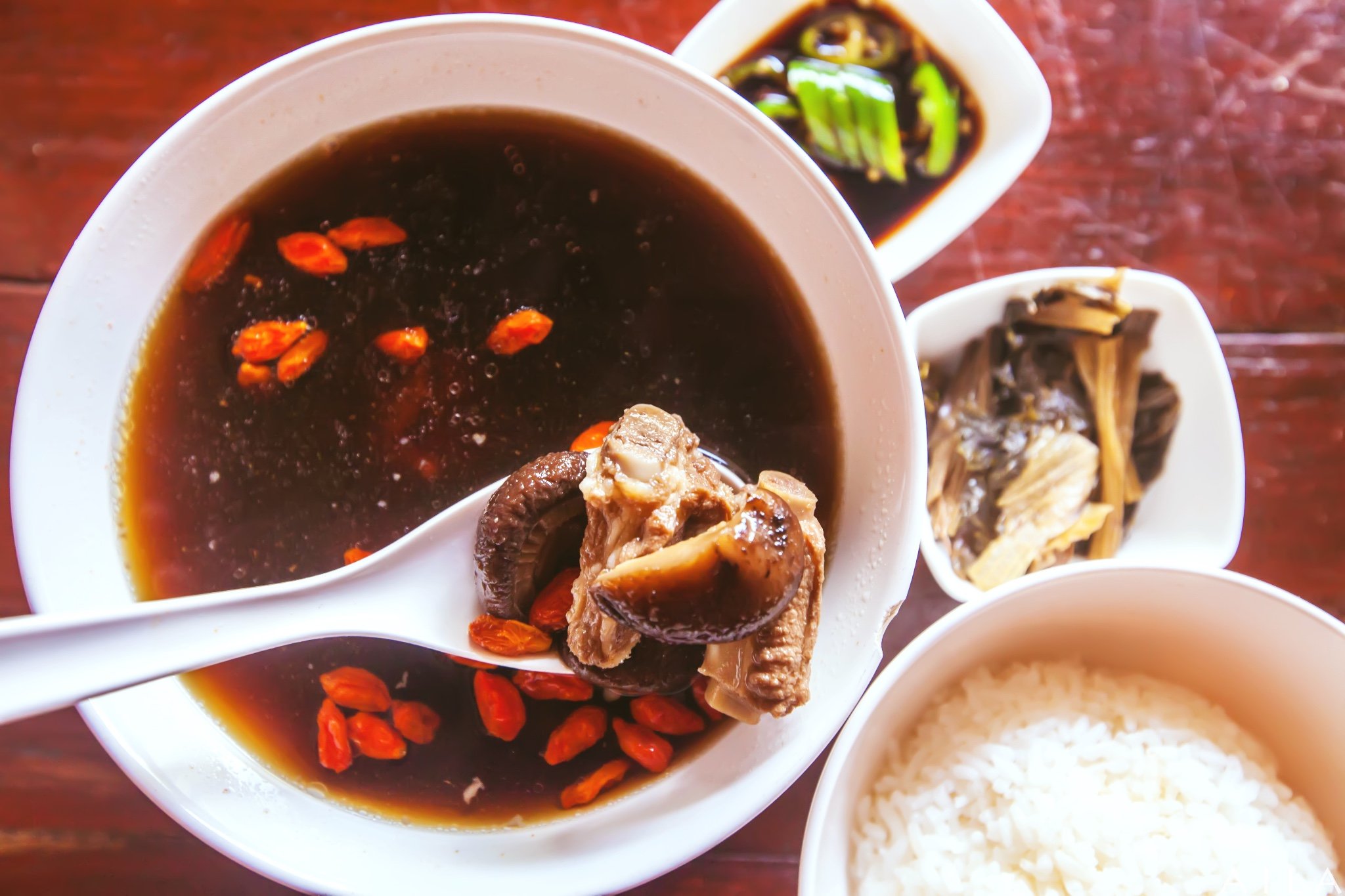 玲点了一份肉骨茶,排骨炖的软烂,跟新加坡的水平绝对无二。