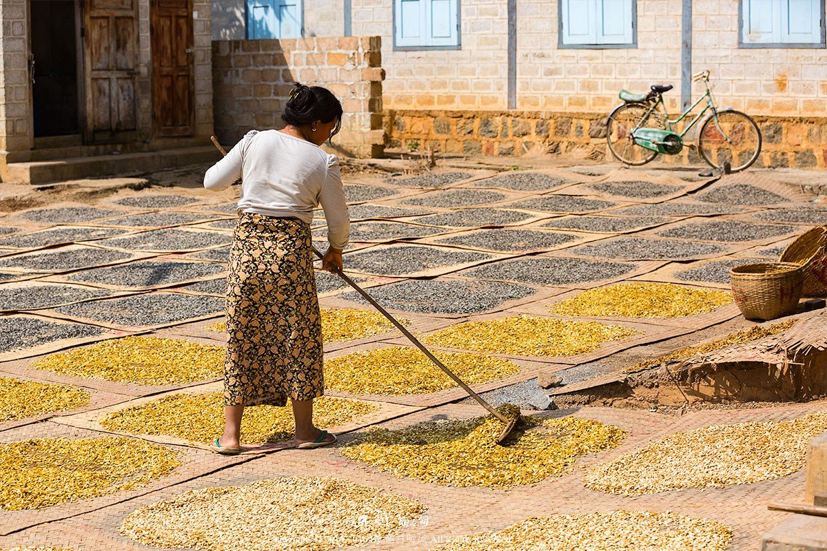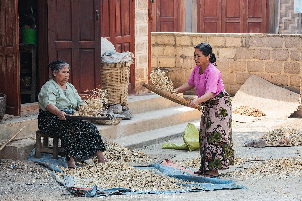 口婆媳俩晾晒去壳的就是用来做豆腐的黄豌豆,老人跟我打招呼,只听懂了一句问我从哪来。缅甸由于以前是英国殖民地,所以年纪大的人都会用英语交流。
