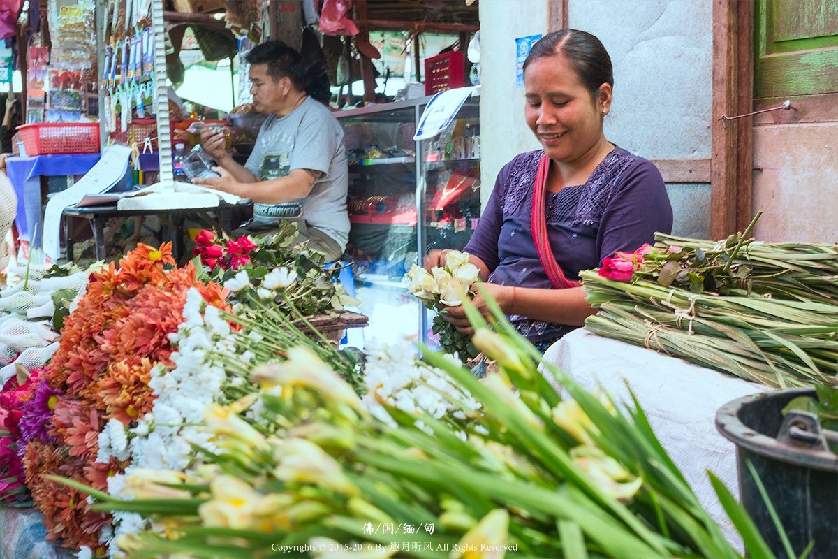 缅甸人喜欢买花,花是用来献佛的,特别是芙蓉花最多。