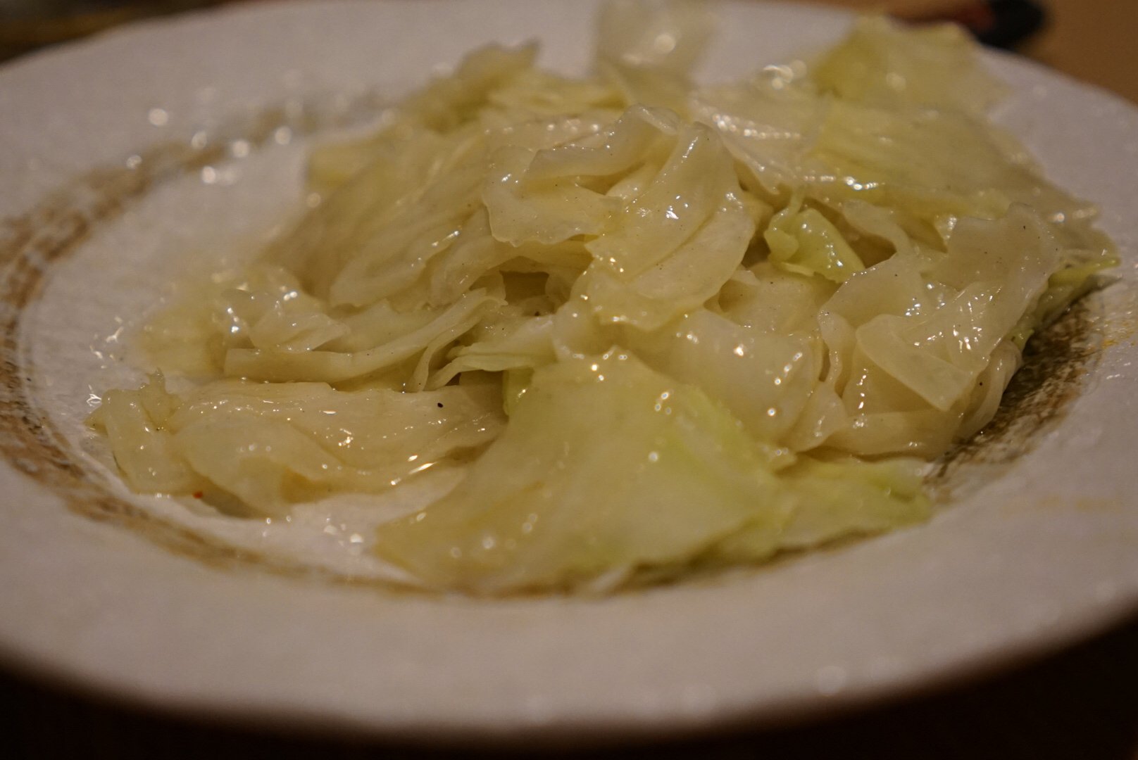 第一盘上的白菜,初看平淡无奇,吃一口震惊了。原来白菜可以这么好吃。“我以后吃不到该怎么办?”马上去大众点评评了个五星,没想到凌晨店家居然回我了,好感动。