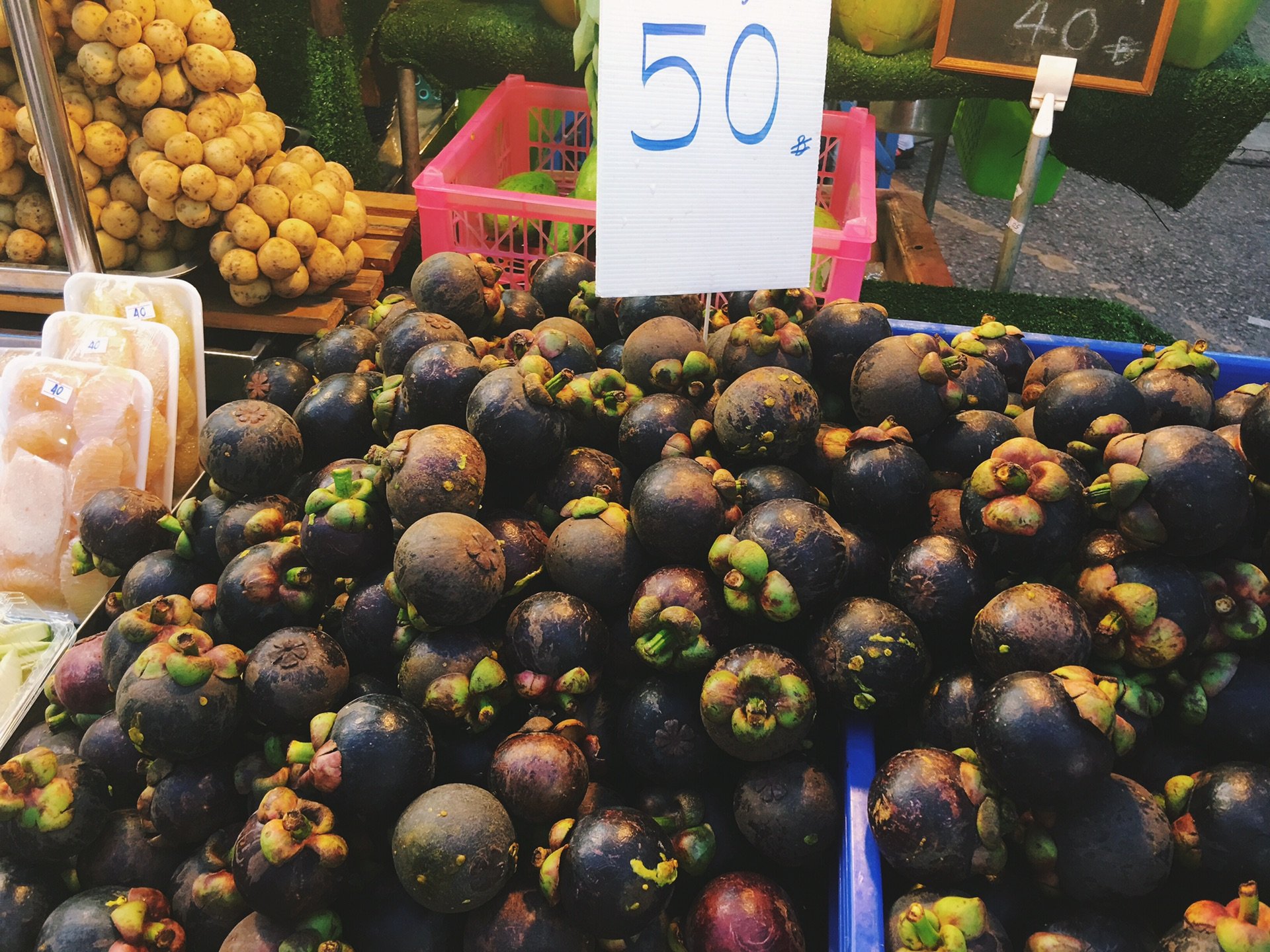 【山竹】好甜,50泰铢一公斤(泰国计量单位是公斤)我们买了一大袋,一会就被消灭了。