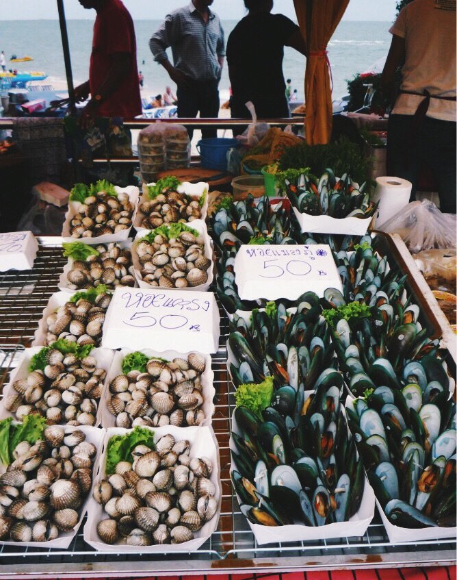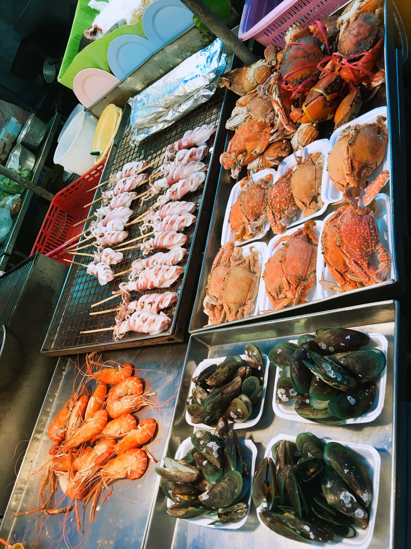 哇咔咔,海鲜我的最爱。尤其我这种爱吃海鲜的小公举。华欣夜市的海鲜很多,尤以鱿鱼、螃蟹和蛤蜊为最