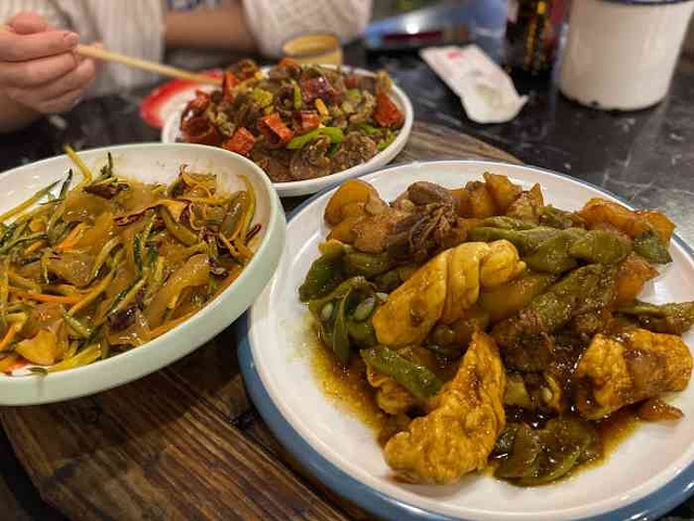 附近的一家有特色的餐厅,服务员起的名字都挺有意思的~最爱的还是排骨豆角粘卷子,点外卖去店里吃都是必点团建来过一回,菜烧的不错,服务也很热情,值得来尝尝! 东北人来点赞了 实名认证真的很好吃 没吃上大肘子.溜肉段 护心肉 都嘎嘎好吃 大拉皮 溜三样 真的绝了。