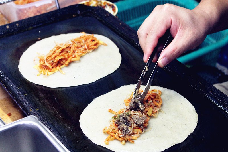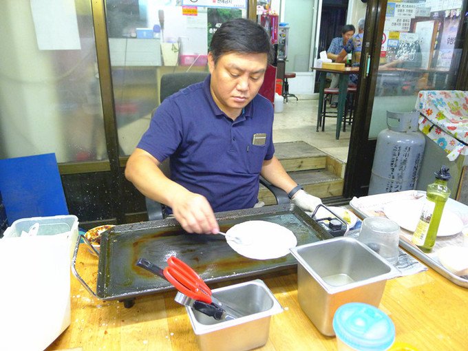 闺蜜强力推荐的一家饼店,名字也很特别“饼的男人”。春川浪漫市场入口。老板亲自下厨~ 基本是3张起点