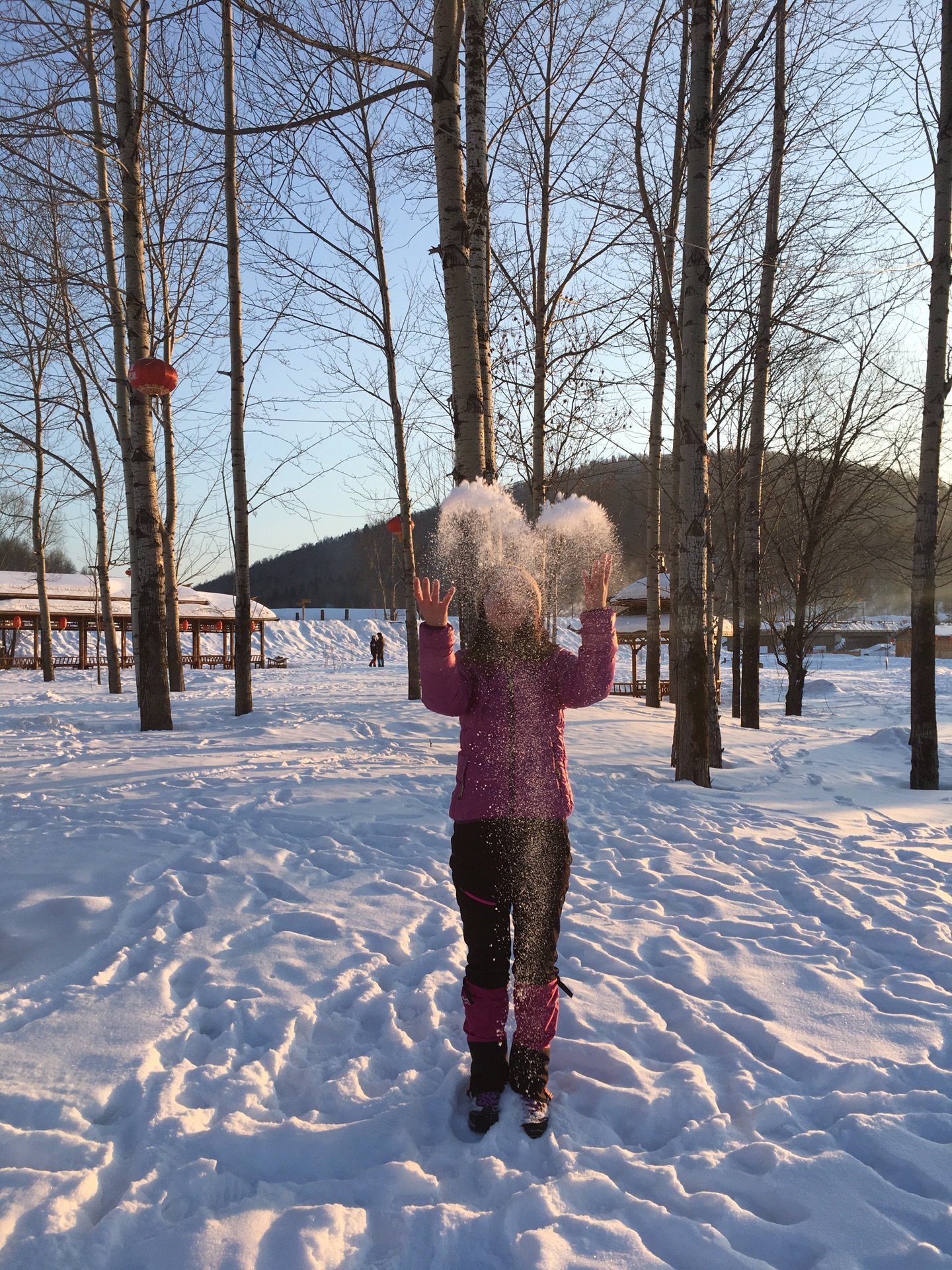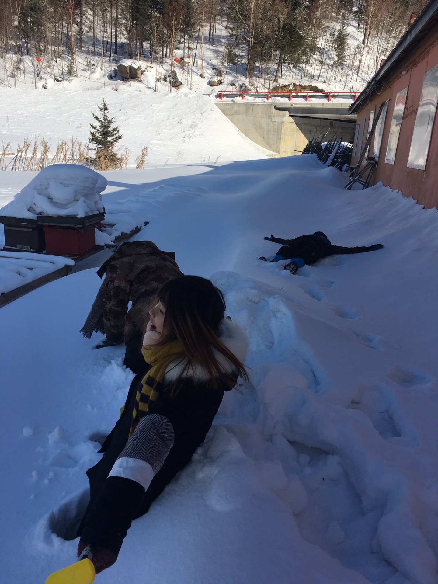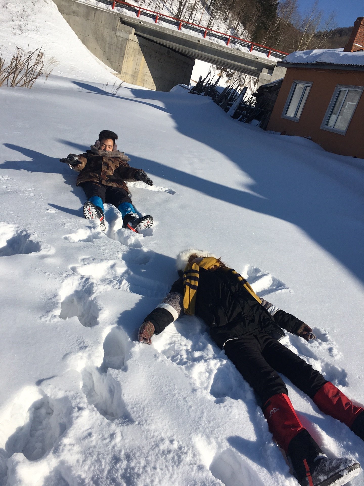 吃完就出去玩耍啦,阿姨家门口有自己挖的一条雪道,家里也有雪圈雪板,拉着雪圈雪板出去滑了好几圈哈哈哈哈特别有意思