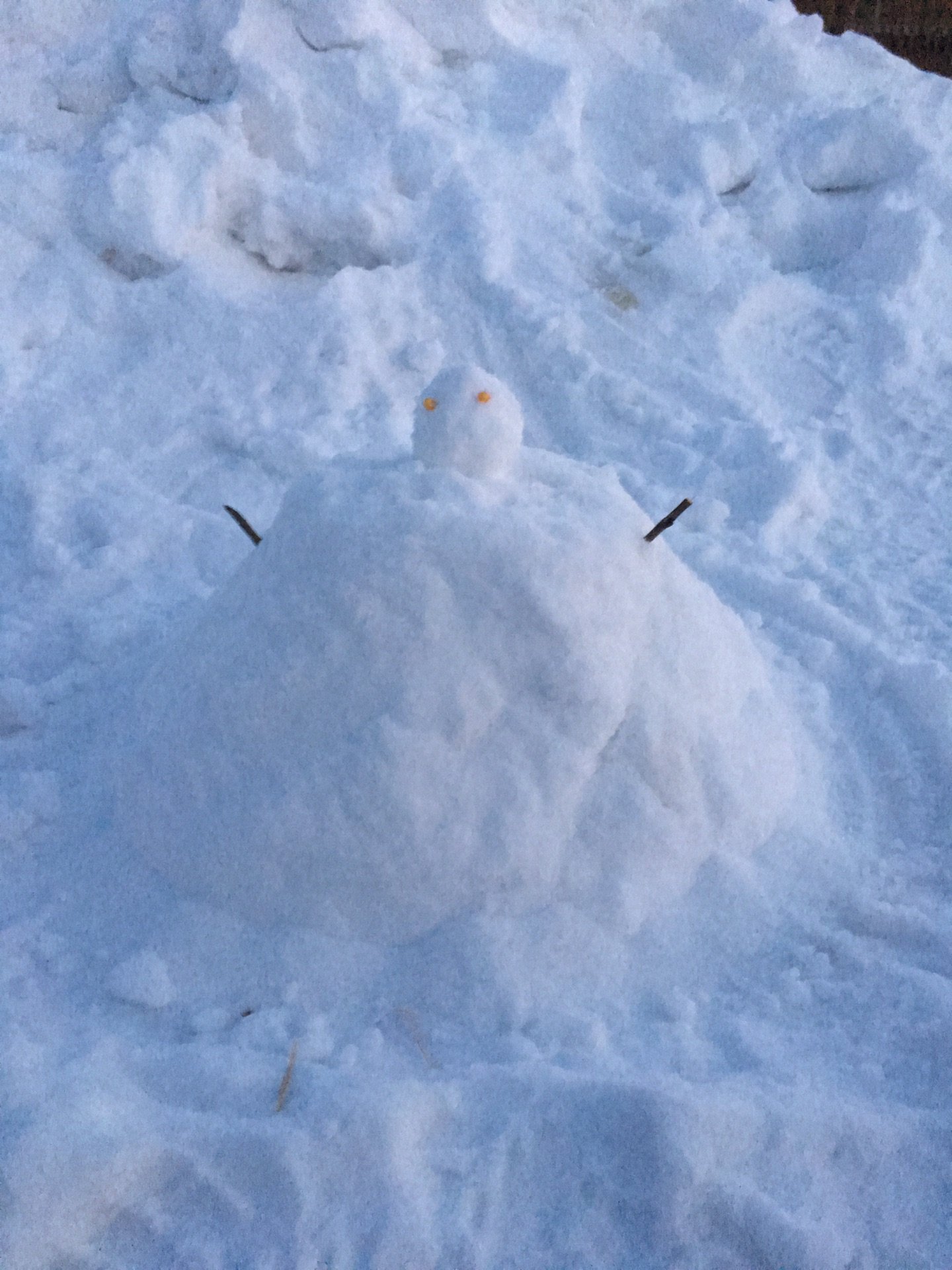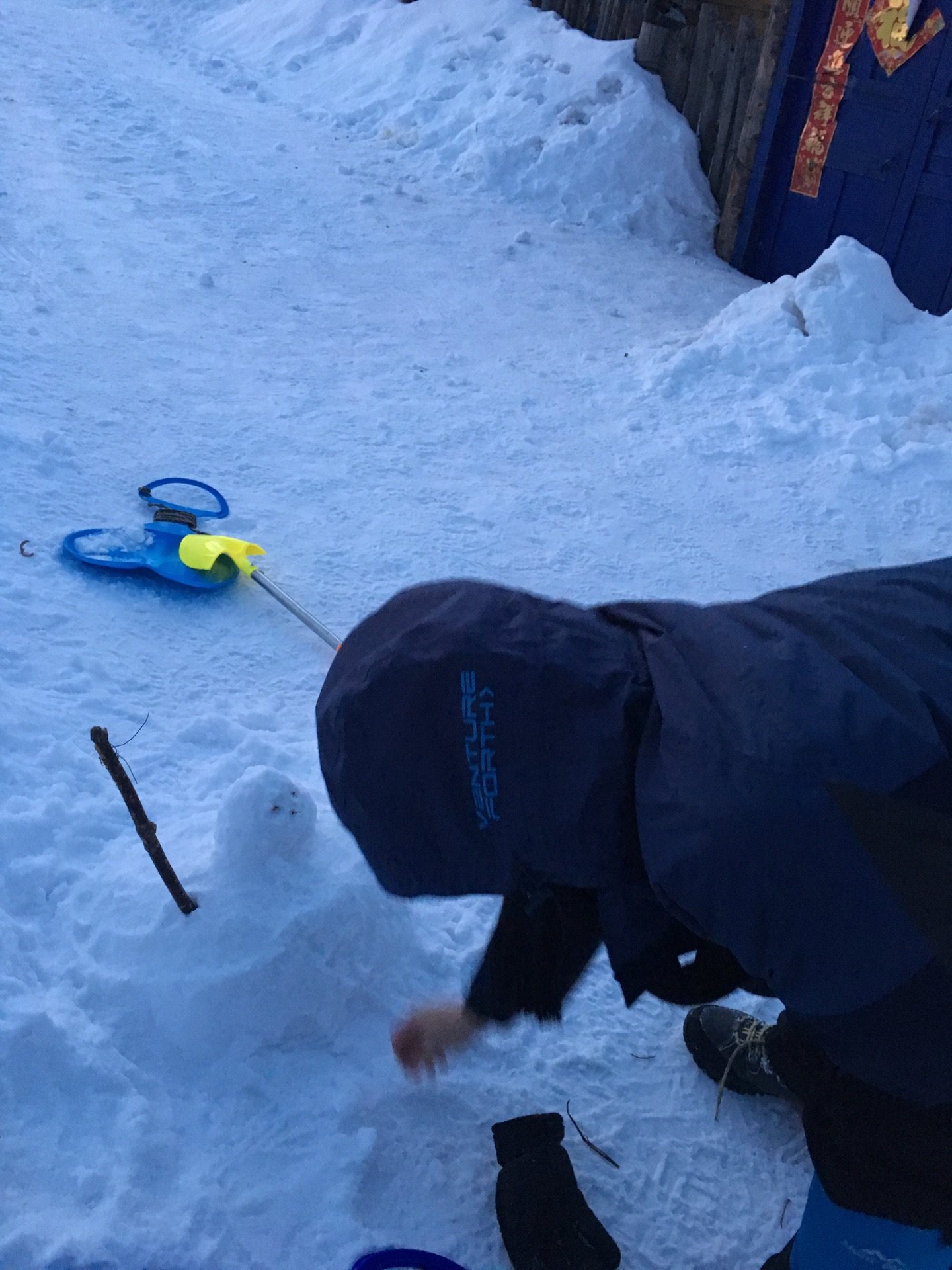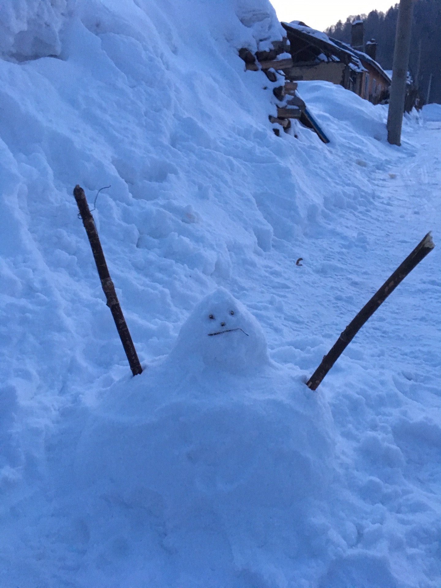 回去阿姨饭还没做好,那就在外堆个雪人吧哈哈哈,以为堆雪人很容易的,结果这雪一堆就散,后来找度娘找了方法才能勉强堆了两个,丑丑的就凑合着看吧❄️