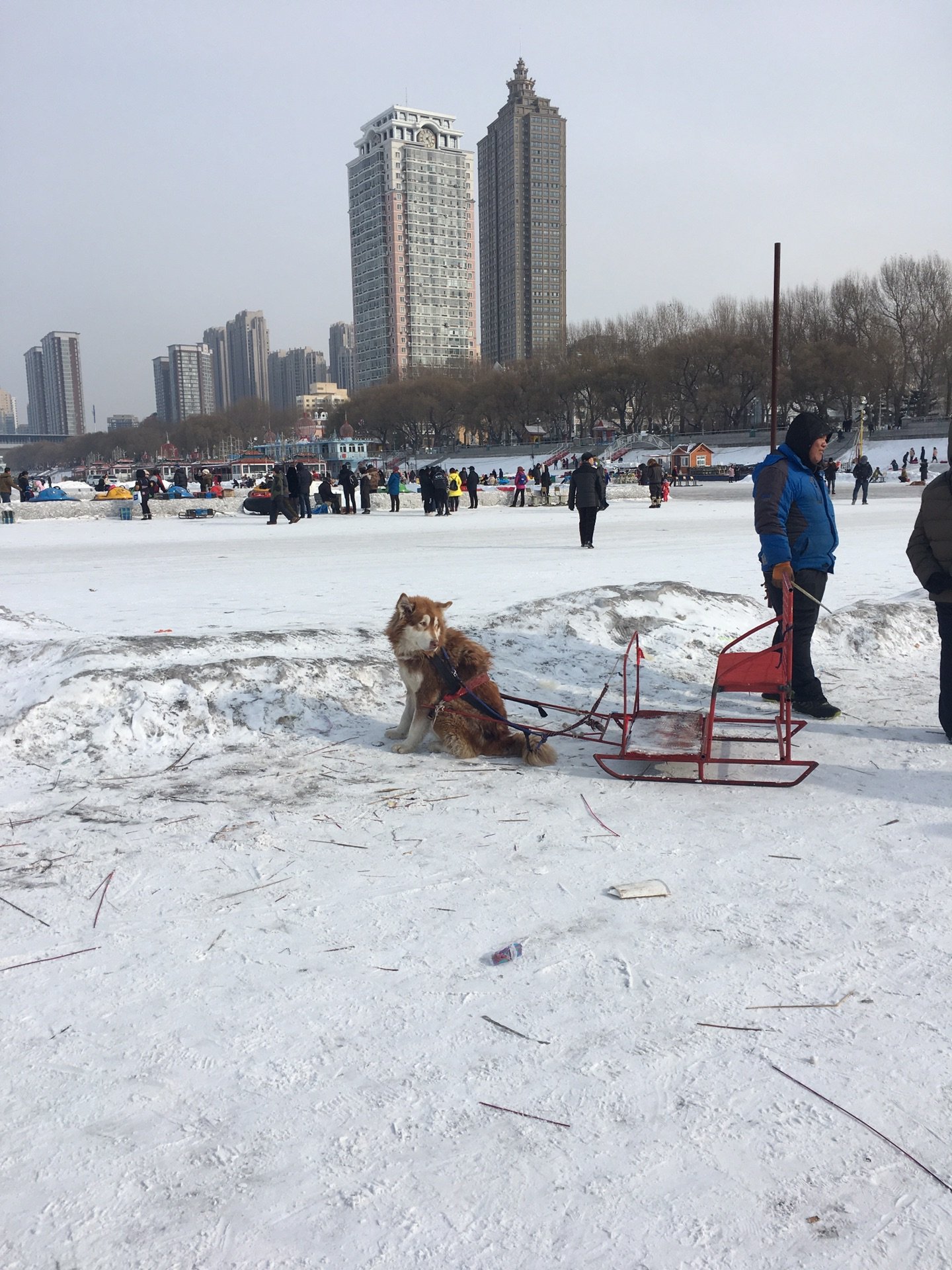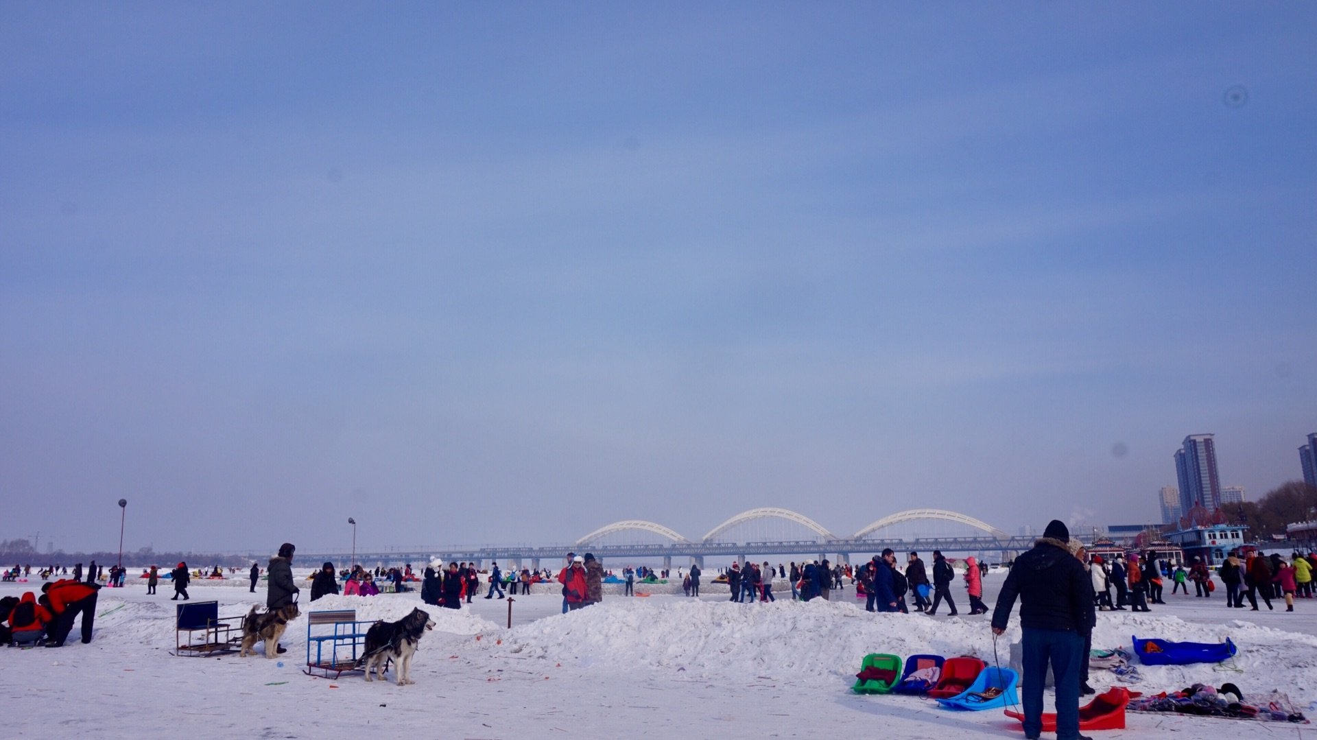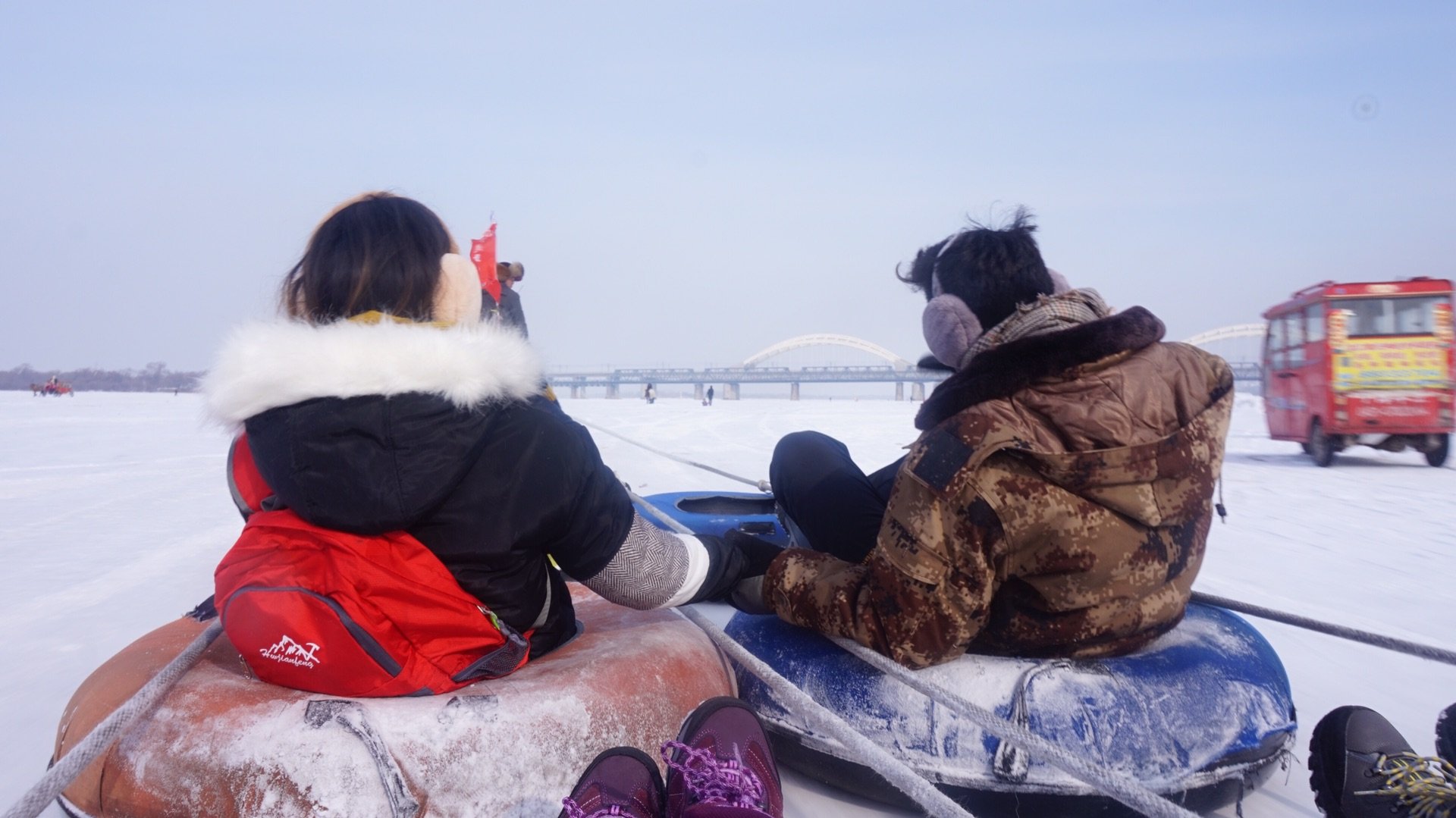 ☃️冰上活动。走到松花江那里便有很多拉客的人介绍你去玩他家的冰上运动,我们一路走下去听到的价格其实都差不多,走了走看了看,最后选择了摩托雪圈哈哈哈哈,看起来比较刺激啦,一个人20,带你在冰上飞几圈还是挺有趣的呢!除了雪圈还有狗爬犁啦,滑冰啦,骑马啦等各种。
