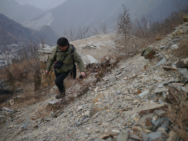 在驷马沟下了车才早上7:40左右,进山的马路有绳子,估计执勤的未来,12个清贫说没准上山能碰到下来执勤的人。 走出去没有10米,12个清贫的预言就应验了,穿着棉袄带着红箍的大妈就山上走来了,张口就问:“两位,去哪儿爬山?”,我们赶紧回答:“我们照相去。”大妈叮嘱道:“奥,别抽烟,别动火,吭!” 今天是北京雾霾黄色预警,山里的雾霾遮天盖山,进入了一个白色的牢笼中。 村委最强悍的路标,估计全世界没有抵敌过的,句句充满负能量,危、止、外、负、警、不,好不可怕Y! 登顶拍葫芦棚村。
