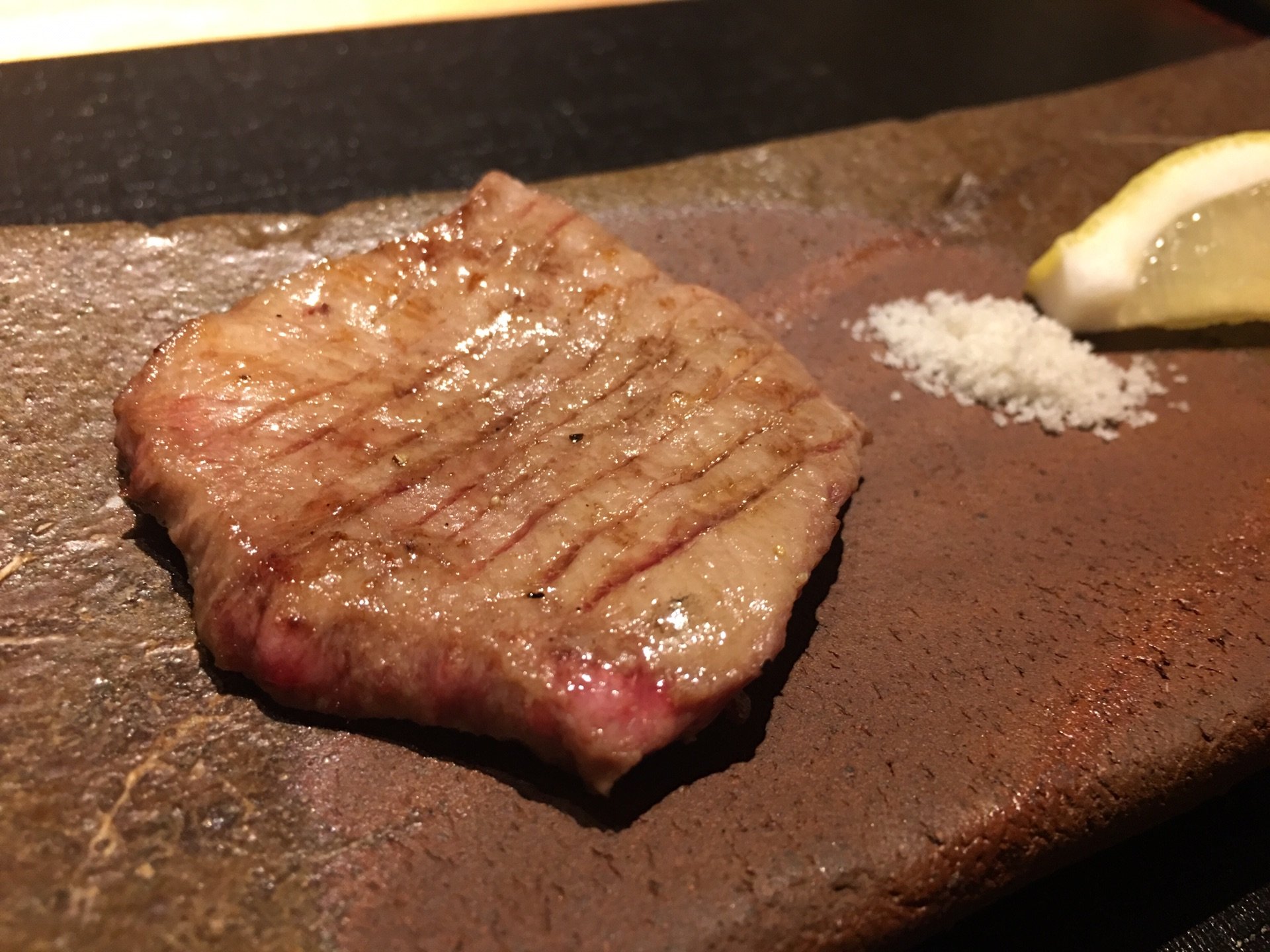 这道牛舌,盐,柠檬,不用多说什么文字,烤至半熟的状态,不薄不厚,不是入口即化,而是弹性十足,配上一些柠檬与盐,恰到好处。沙拉,也让自己的味觉做了适当的调整,均衡了营养。