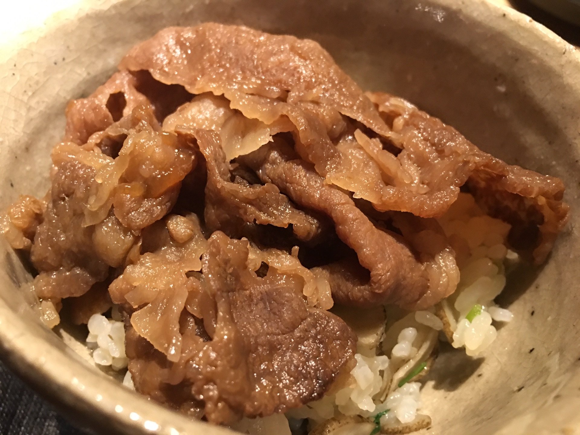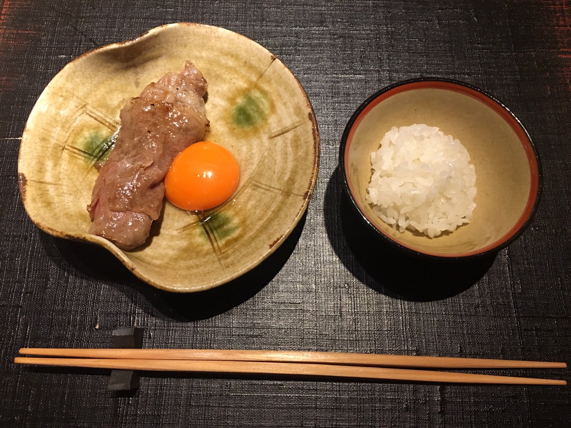 这个可以算是精品寿喜烧吧,哈哈哈。一片很大很大的薄片配上生鸡蛋,一半鸡蛋用来蘸肉,另一半就可以浇在饭上也是别有一番味道啦,就是不知道国内不吃生鸡蛋的小伙伴们,能不能接受,其实没有什么鸡蛋的腥味,口感也没有什么特别奇怪的感觉,大家不妨试试看喽。