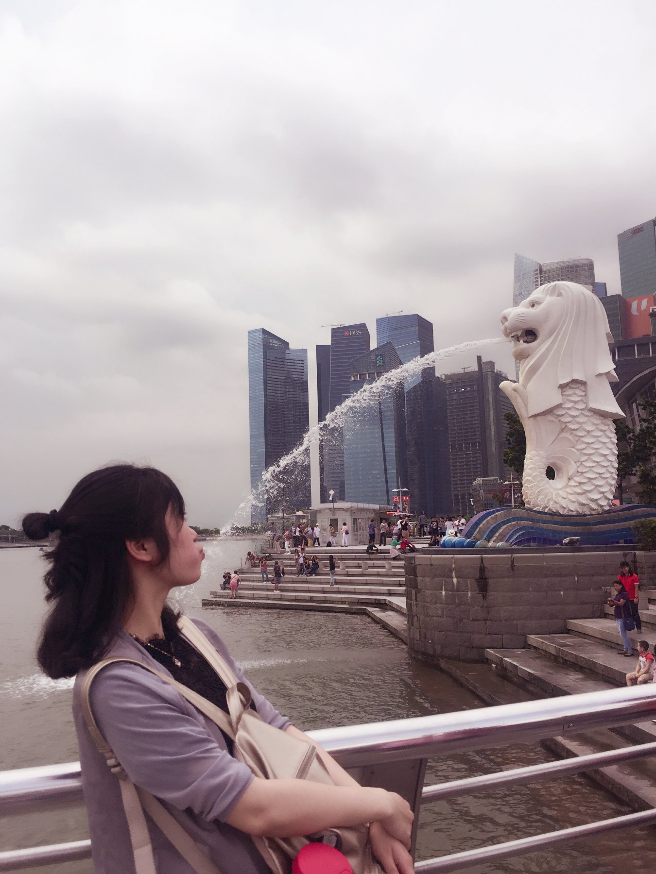 第一站当然是鱼尾狮公园,地铁红线(NS线)到NS26-Raffles place(莱佛士坊)站下车,步行十分钟就可以看见小狮子了。