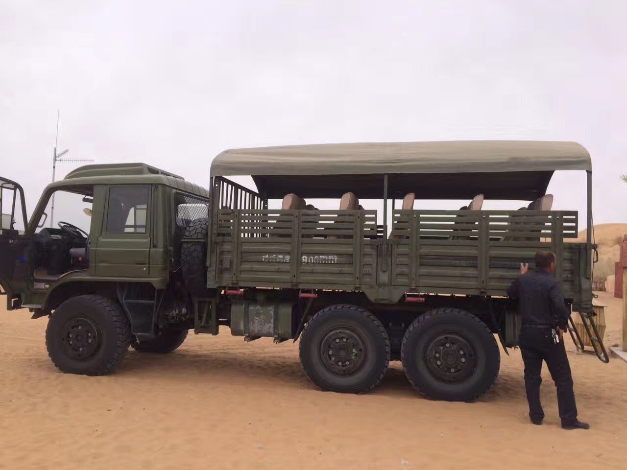 因为昨天大伙走伤了。今天冲沙车拉我们出去。给我摇啊晃啊弄的不行不行的。但挺刺激的挺爽的。这车在沙漠里必须开的很快,要不就会翻车之类的。