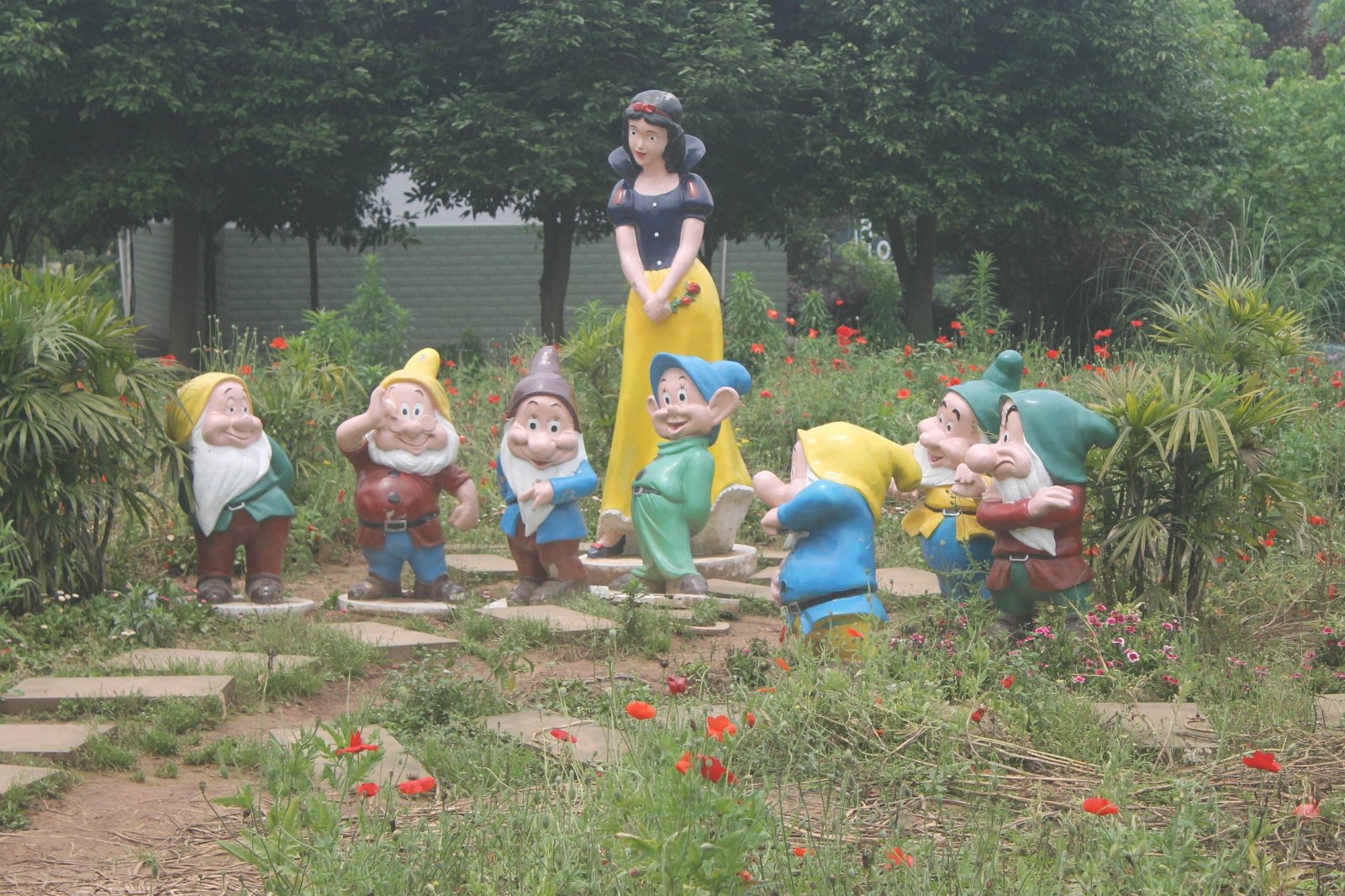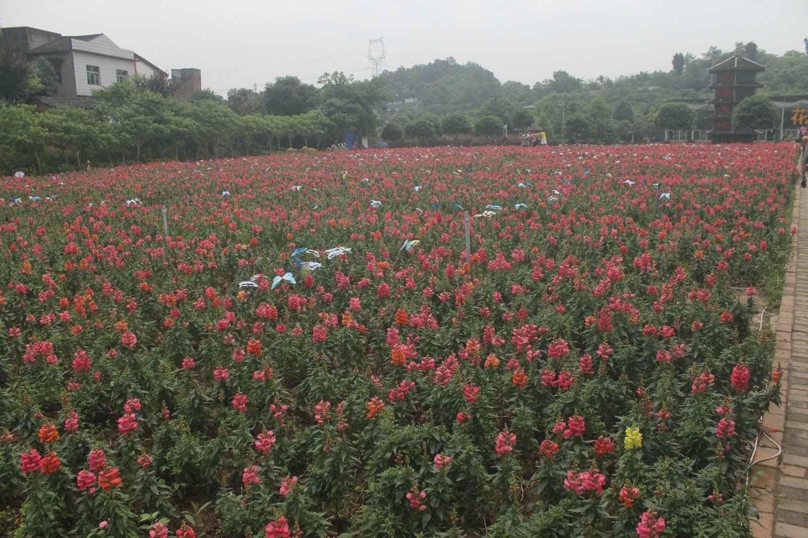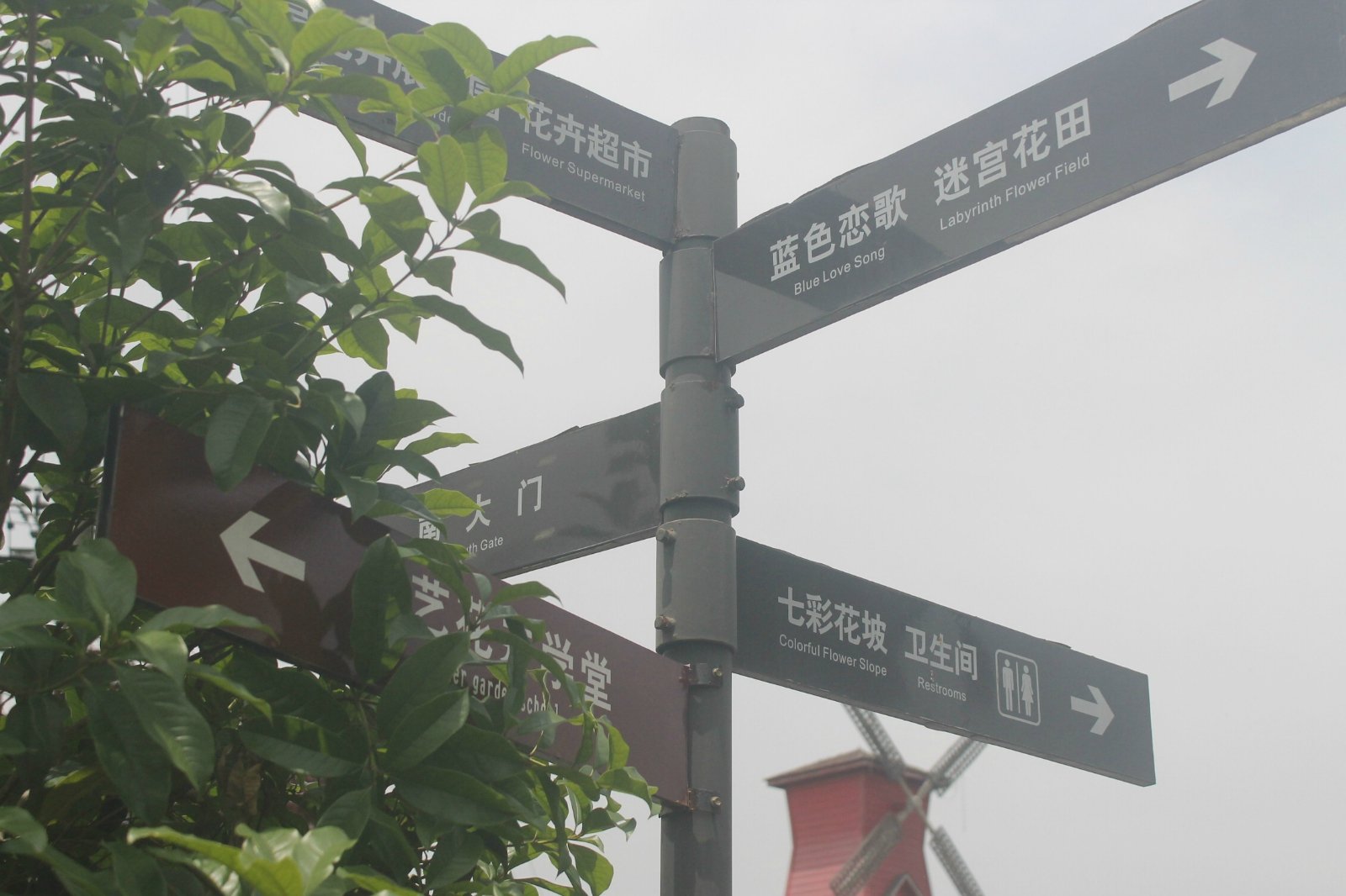 景区进门左边是七彩花坡、迷宫花田、花漫大地等景区。这片区域很大,七彩花坡引入很多卡通的原素,如白雪公主和七个小矮人、荷兰风车、花车等形象。迷宫花田仿造八卦阵,使人仿佛掉入花的迷宫之中。花漫大地这里也是凤凰花海景区内的一大亮点,塔楼造型的花漫大地在这一景区尤为醒目。其后方就是颇具特色的花卉餐厅。