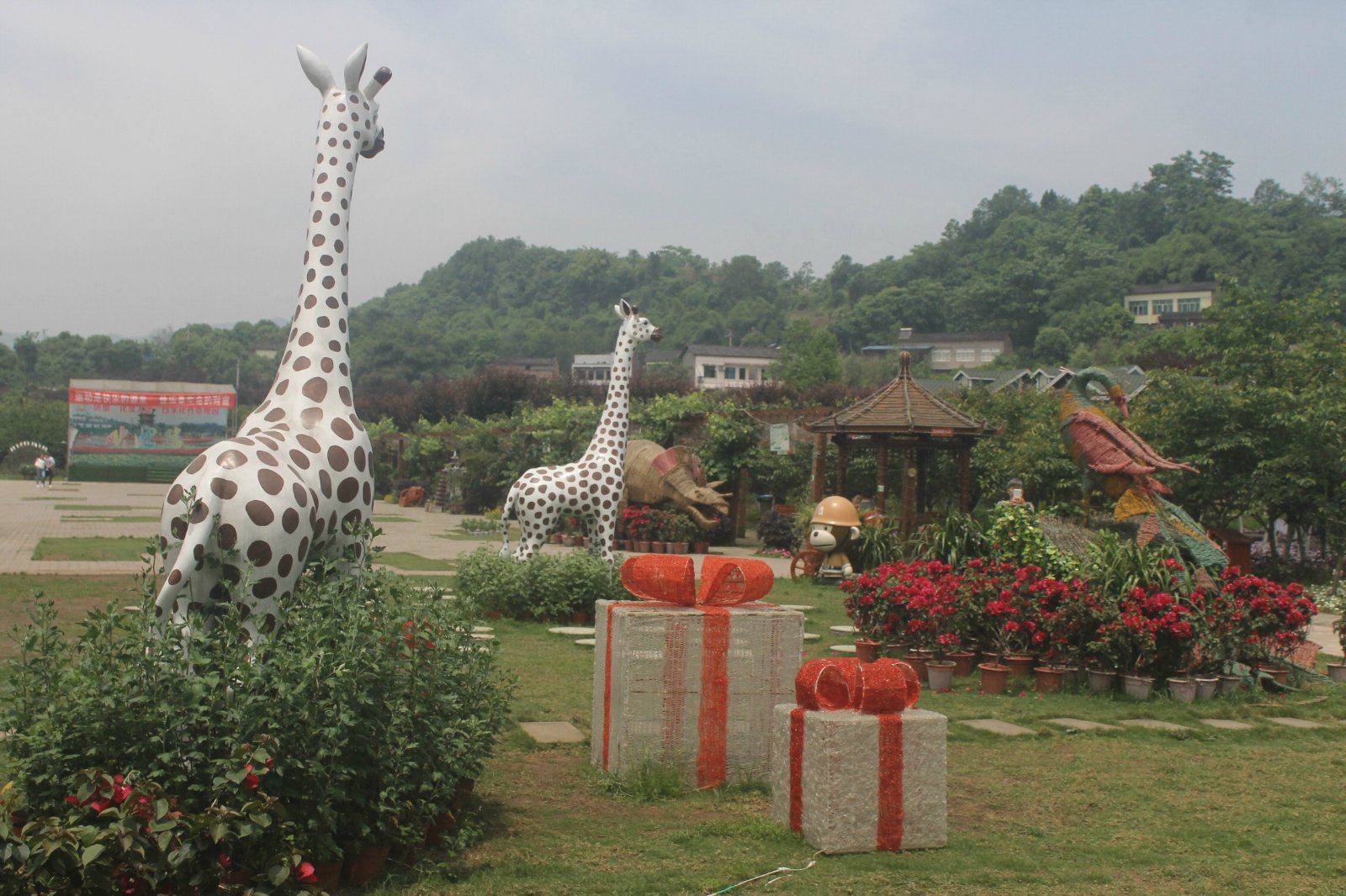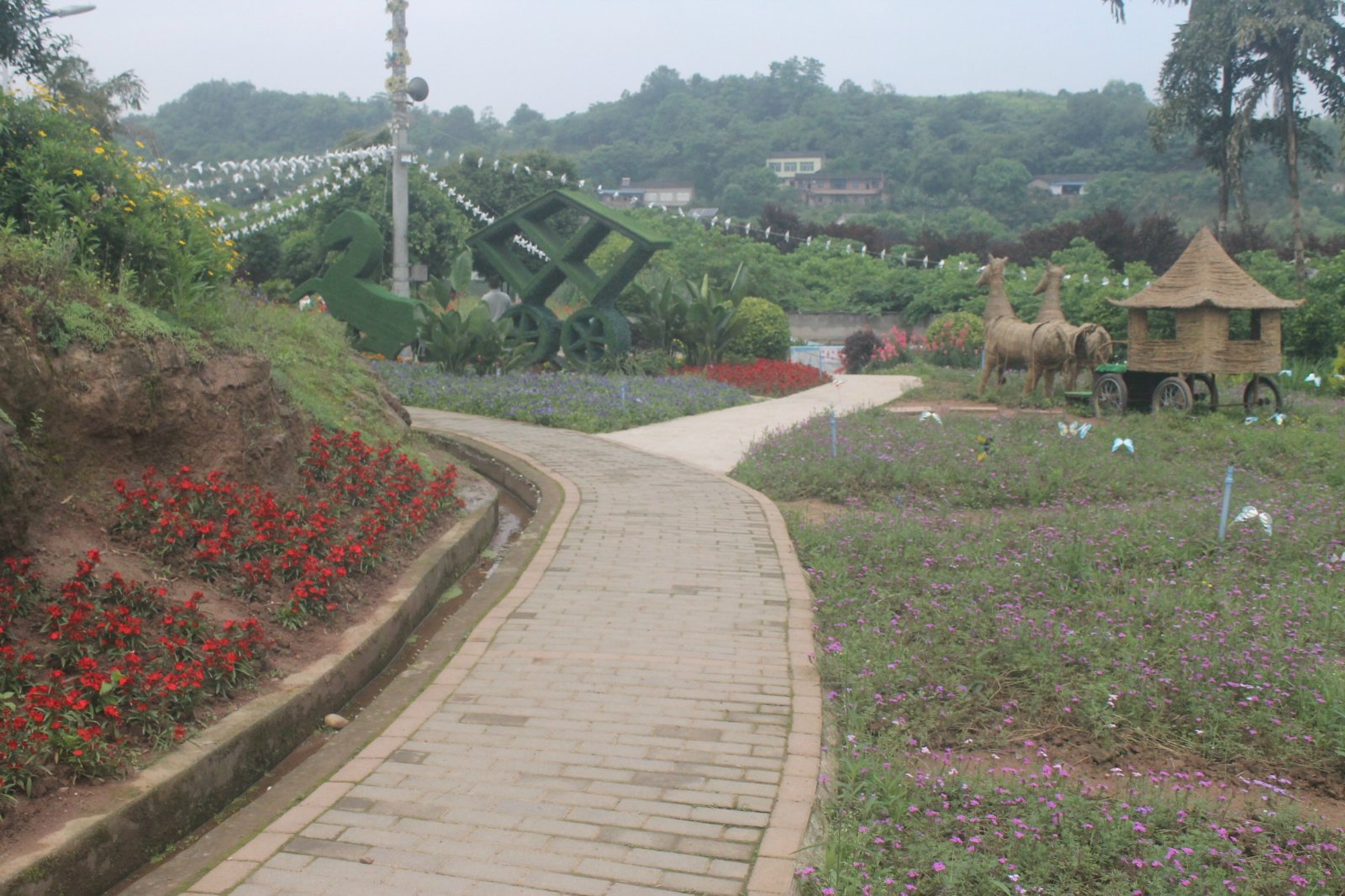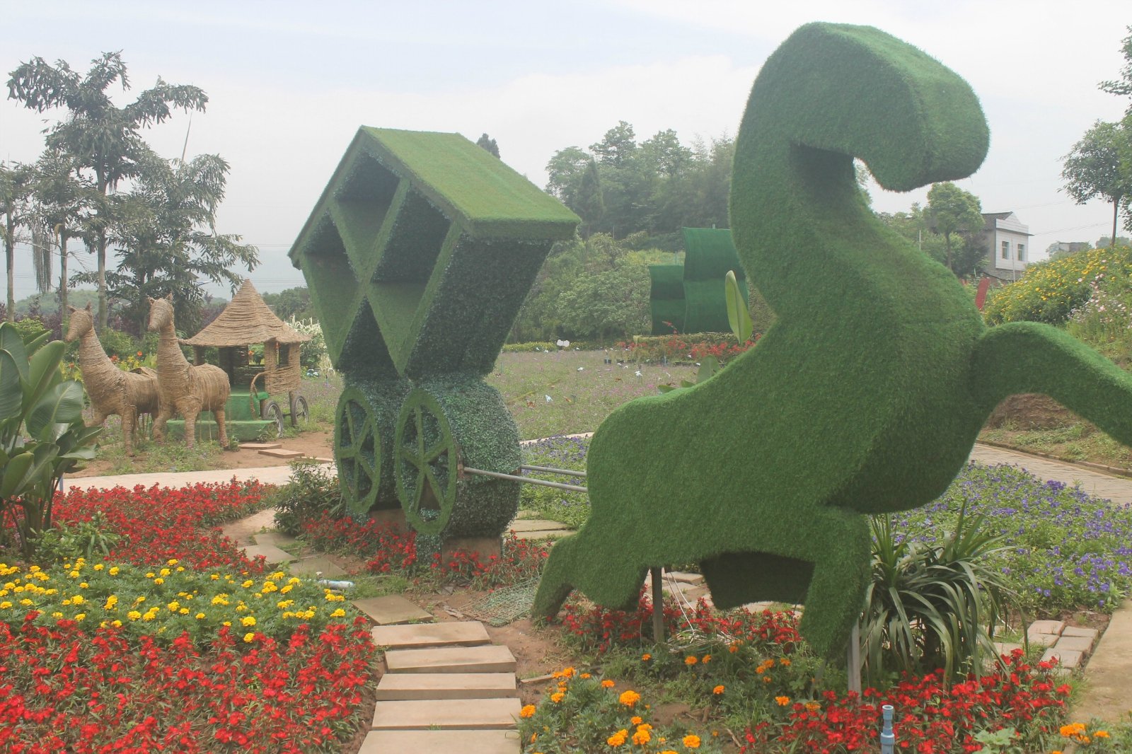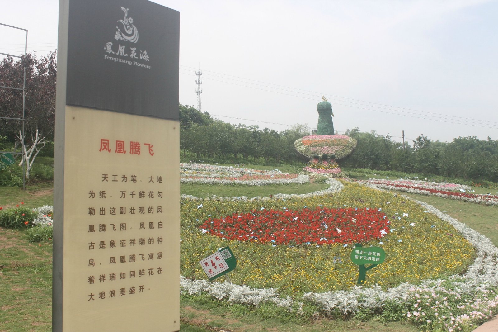 整个景区占地面积不算大,进门右手边的凤凰腾飞,是若干鲜花组成花凤凰,鸟头朝天,振翅欲飞,非常壮观。