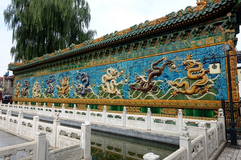 宣化九龙壁。9米,共由6266块特制加厚的七彩琉璃制品构件砌筑而成,据说有639条龙