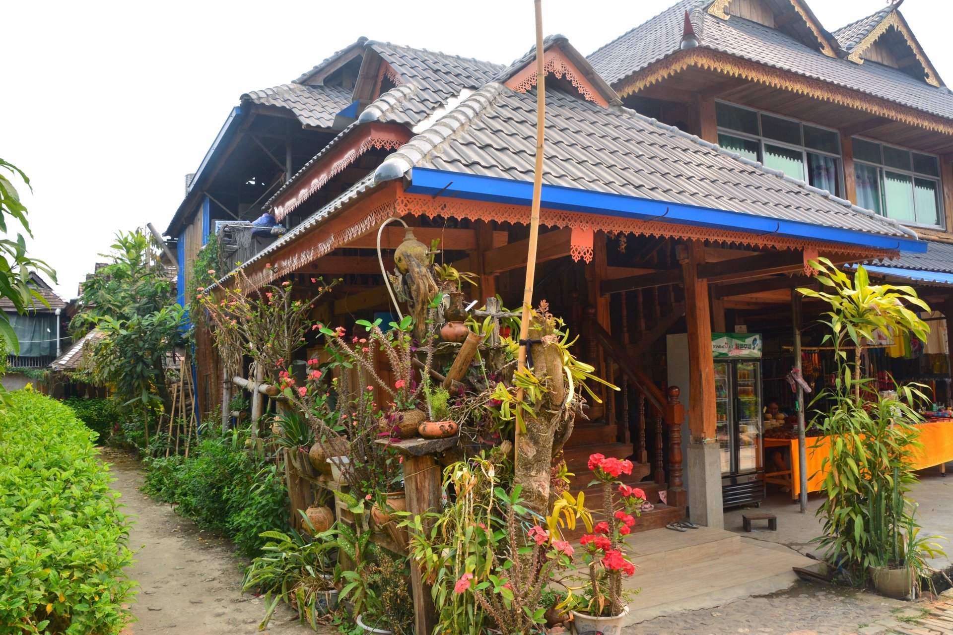 傣家的村寨,还是很古朴。极具特色的傣家竹楼还保留有一些。但大部分人家已经有了砖房。仍旧是仿木架构。