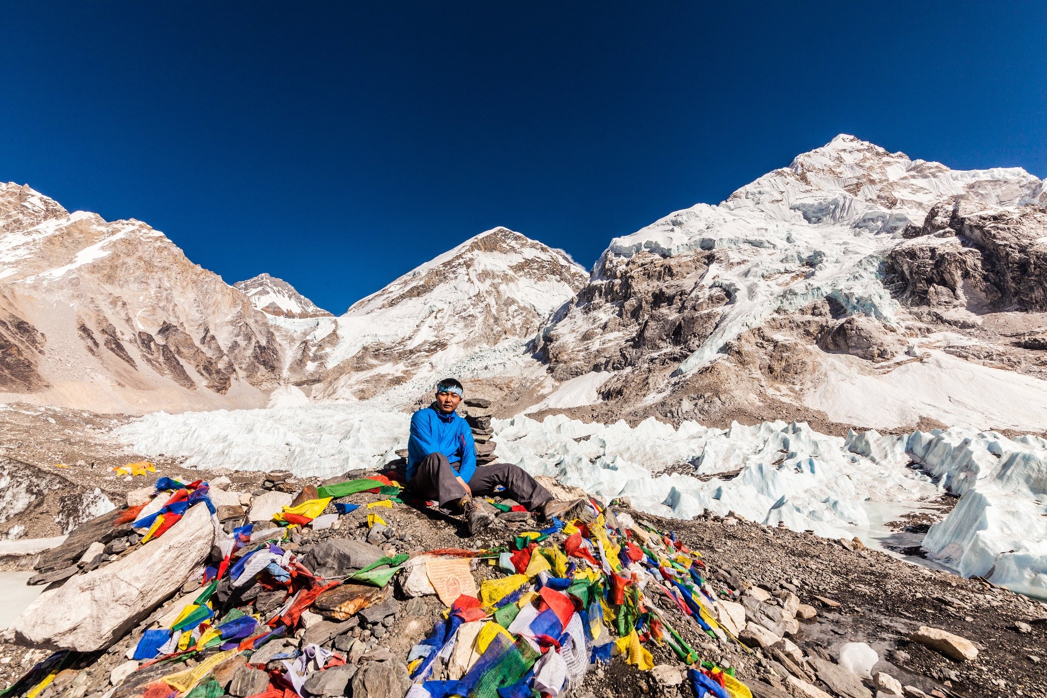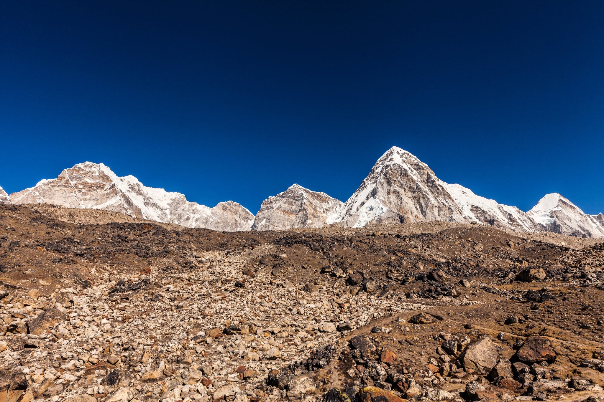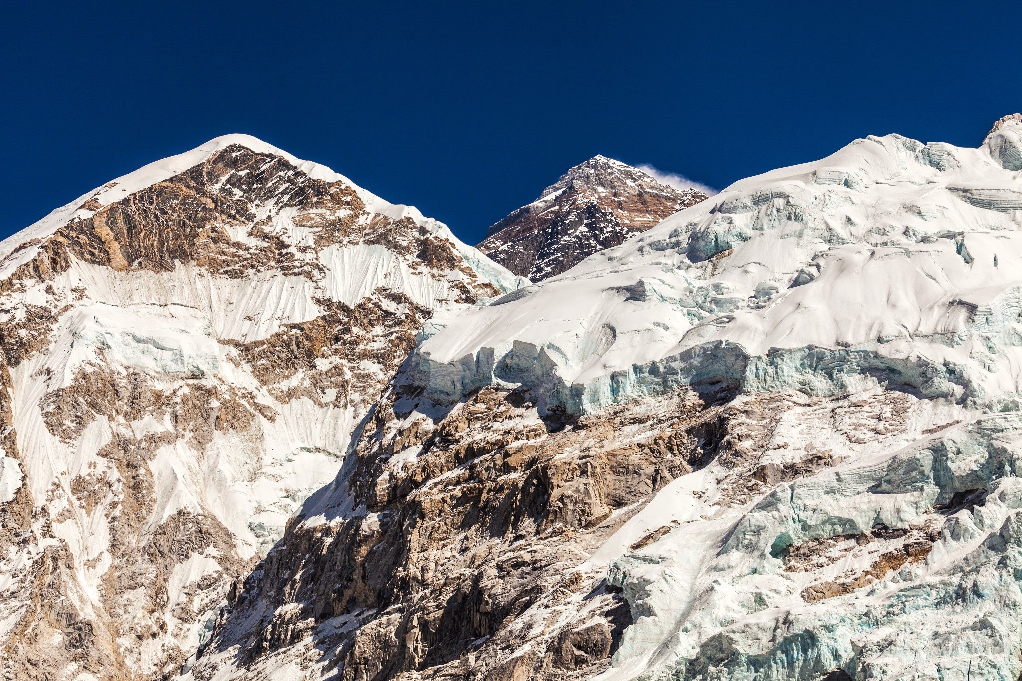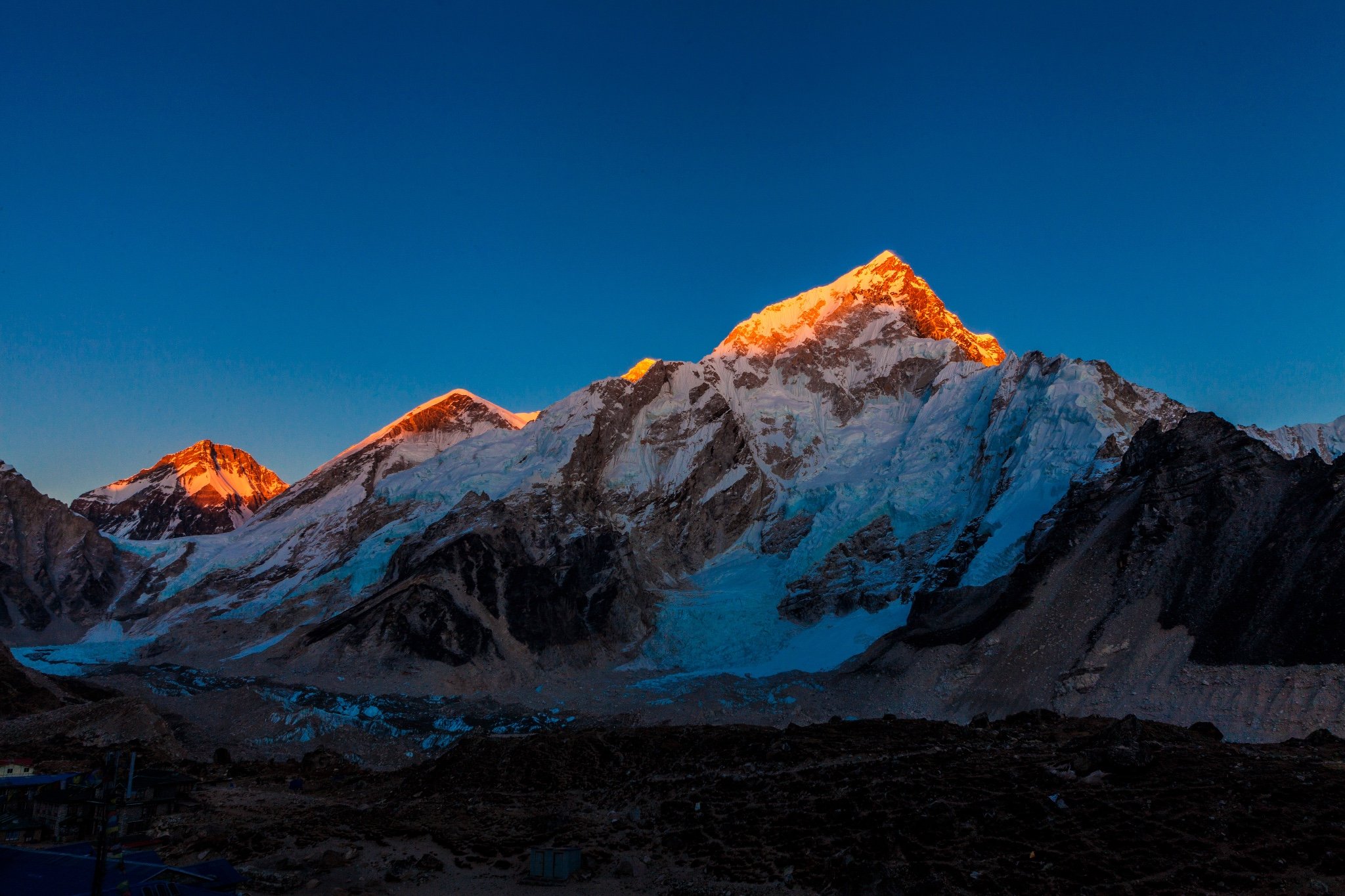雪山前面就是昆布冰川,应该是地震的原因,冰川上面都是有很多沙石,但是非常壮观,冰川的尽头就是珠峰大本营。